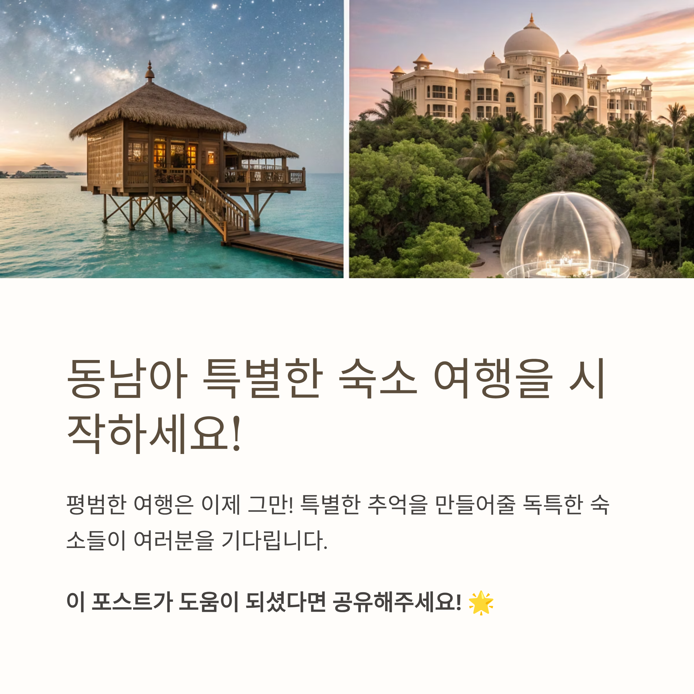 🔽 이제 동남아의 이색 숙소들을 종류별로 살펴볼까요? 🔽