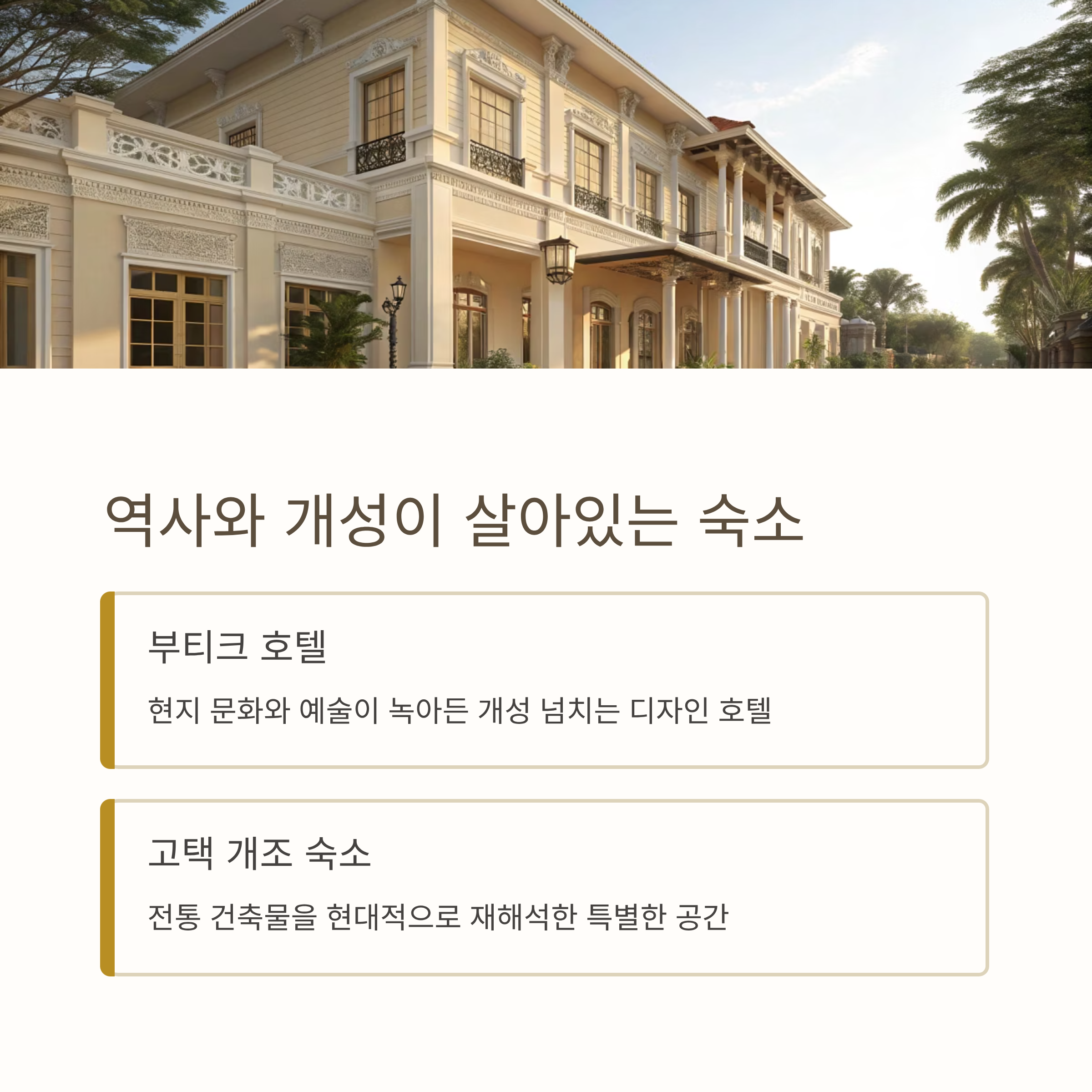 🏰 역사와 개성: 부티크 호텔 & 고택 개조 숙소