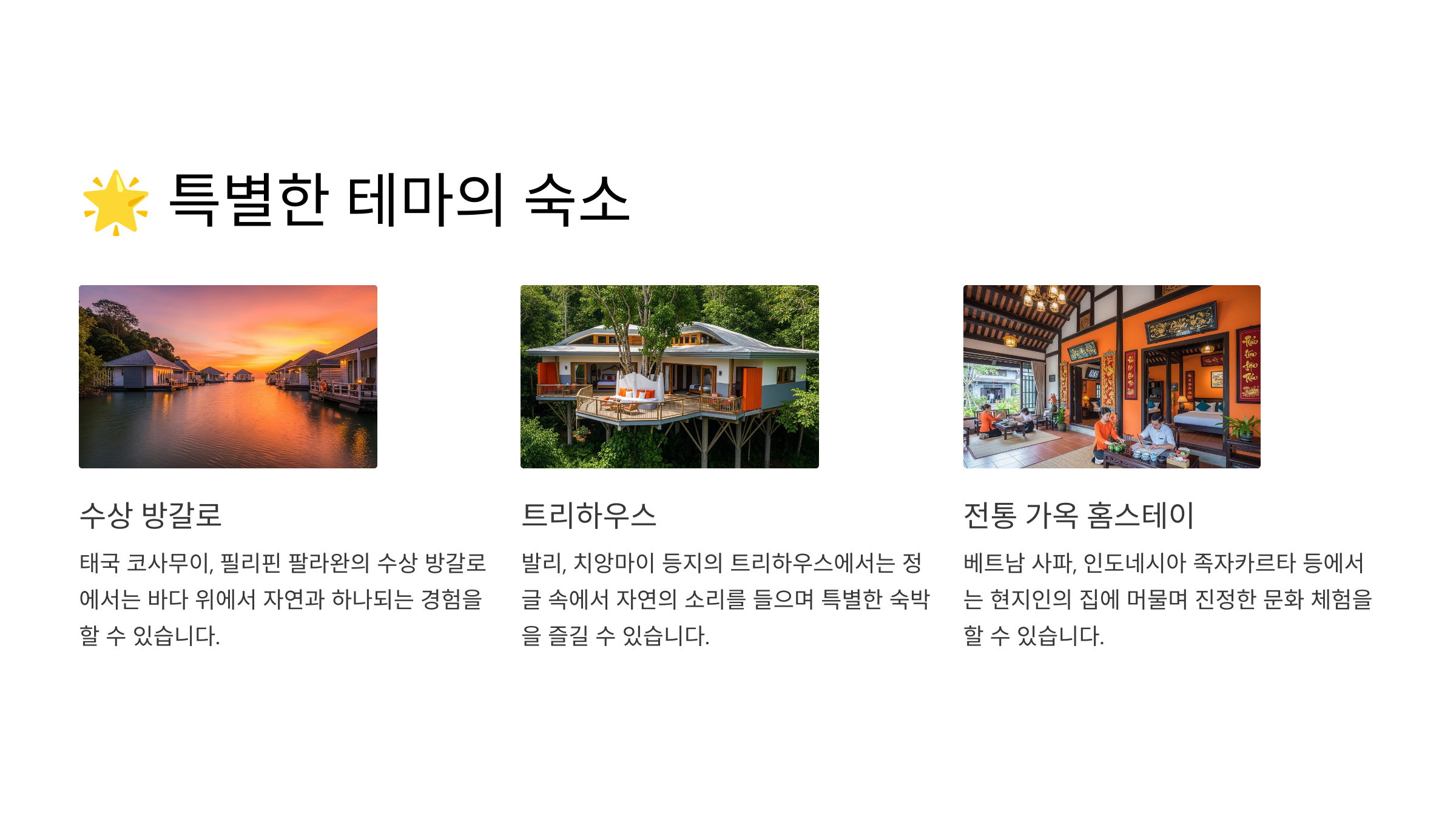 특별한 숙소에서 더욱 특별한 동남아 여행을 경험해 보세요! 💖