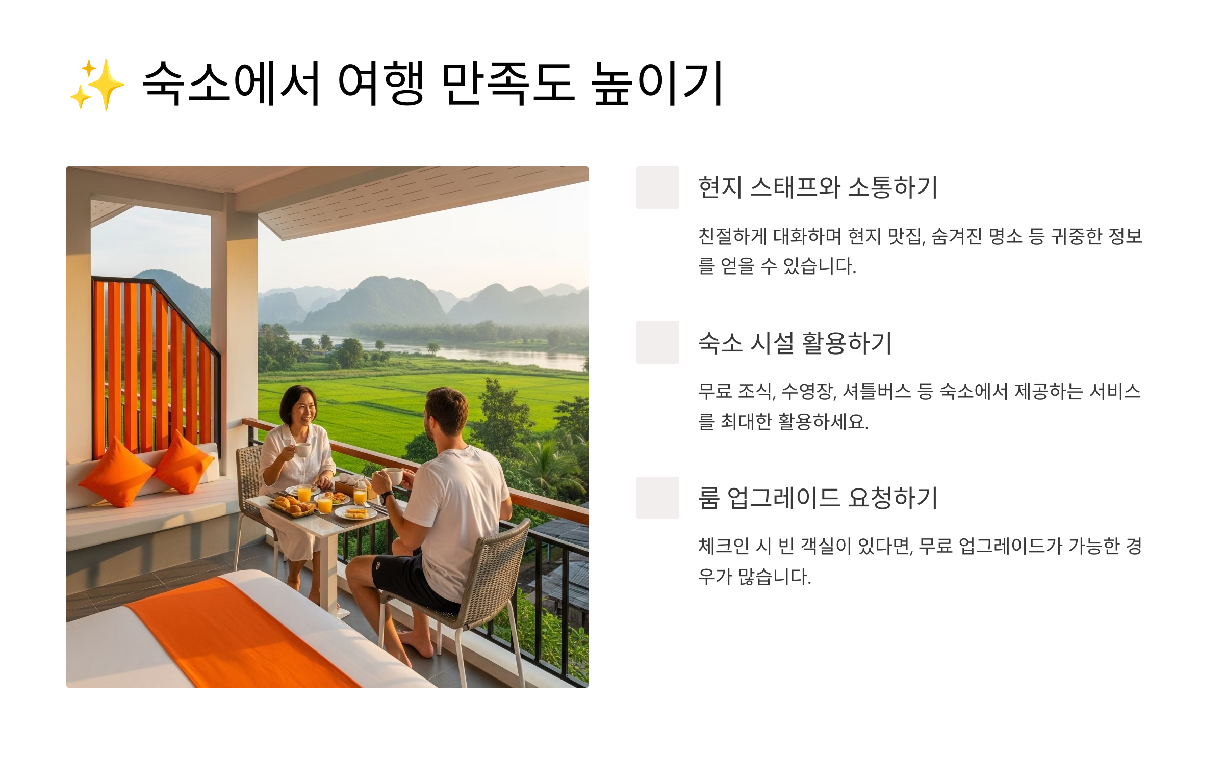 숙소를 100% 활용하여 여행의 진정한 가치를 찾아보세요! 💖