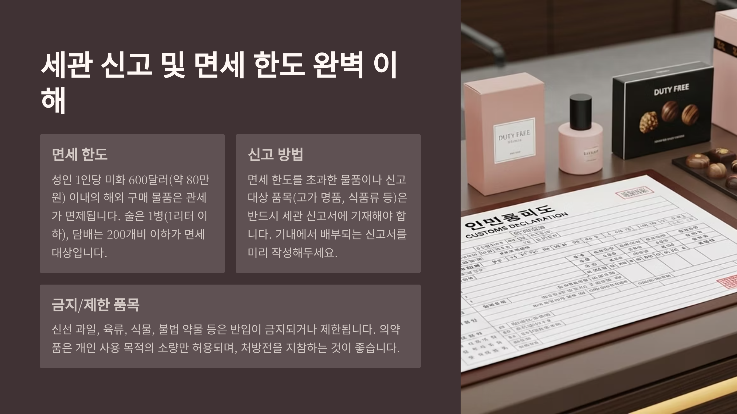 | 항목 | 면세 한도 | 주의 사항 |