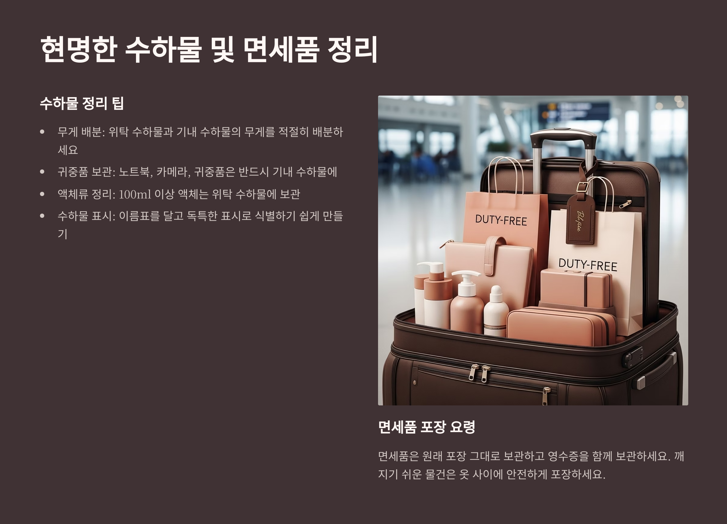 🛍️ 현명한 수하물 및 면세품 정리