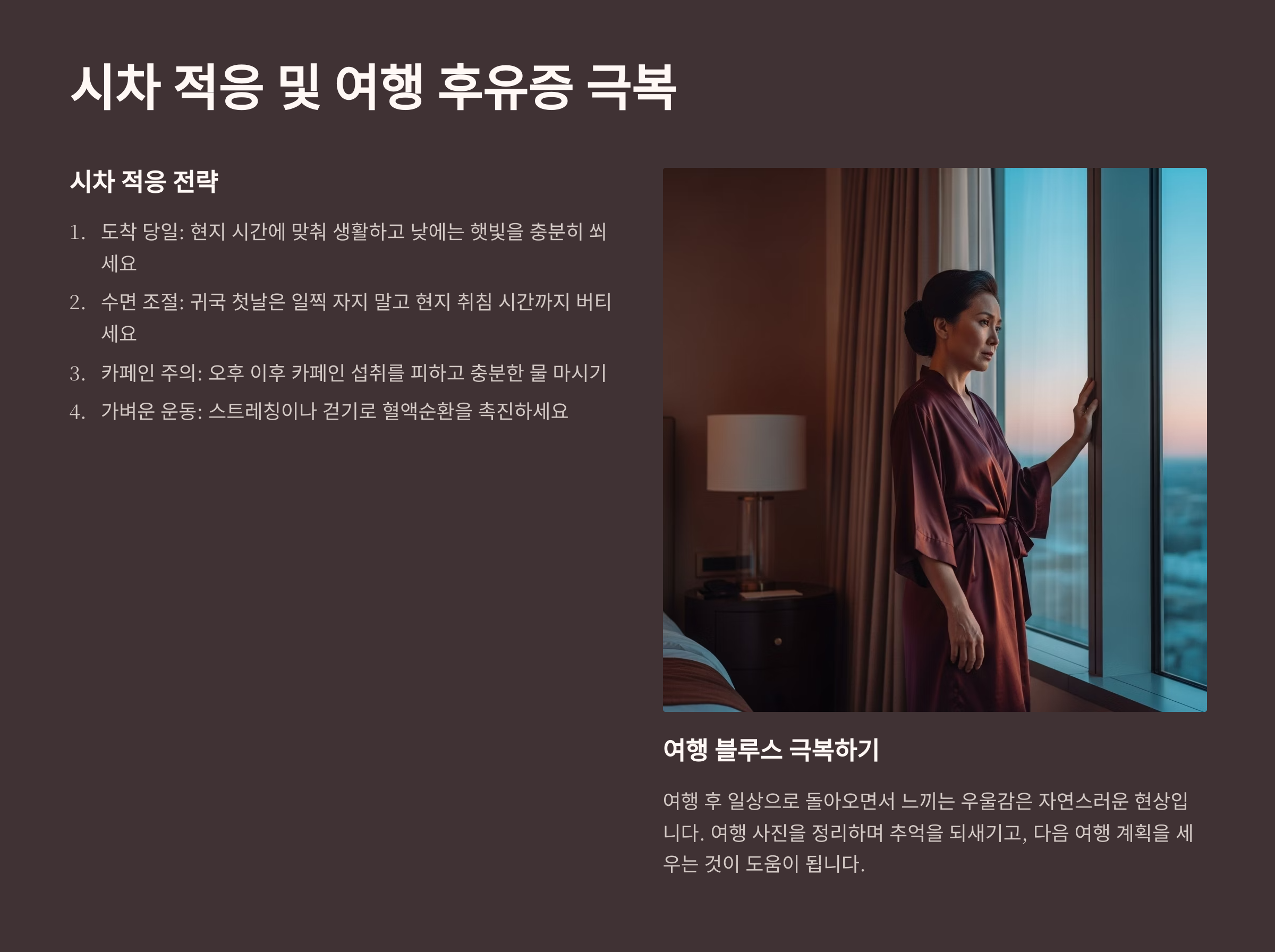 😴 시차 적응 및 여행 후유증 극복