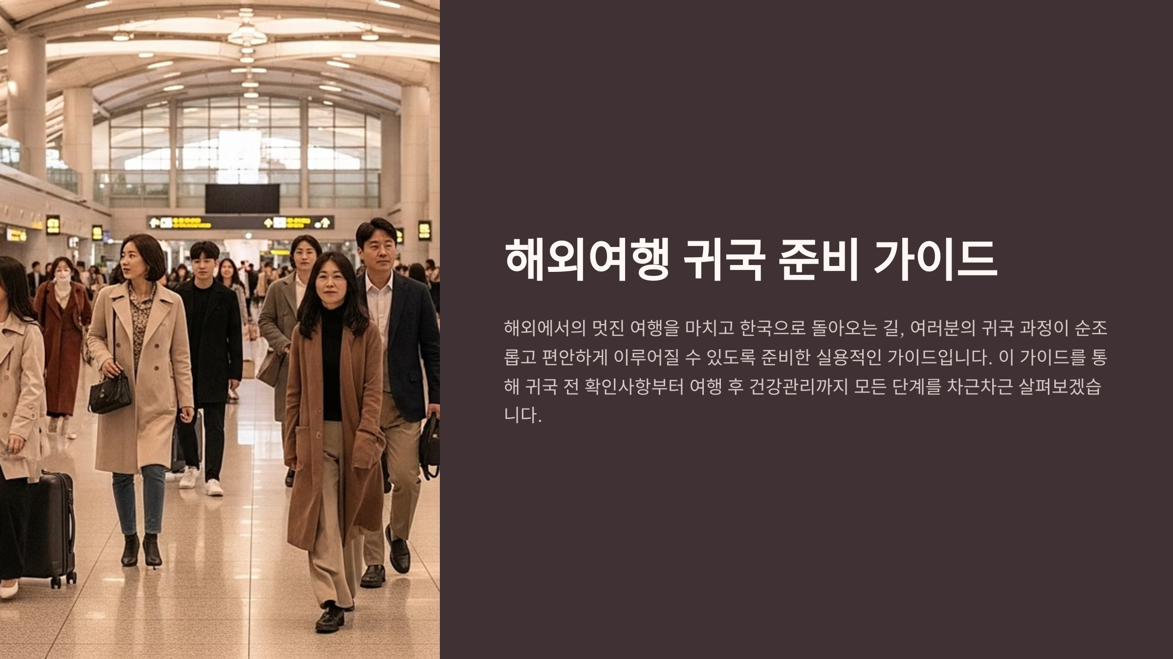 이 가이드는 항공편 재확인부터 수하물 정리, 세관 신고, 귀국 후 건강 관리, 그리고 여행의 여운을 정리하는 방법까지, 여행자를 위한 필수 정보를 담고 있어요.
