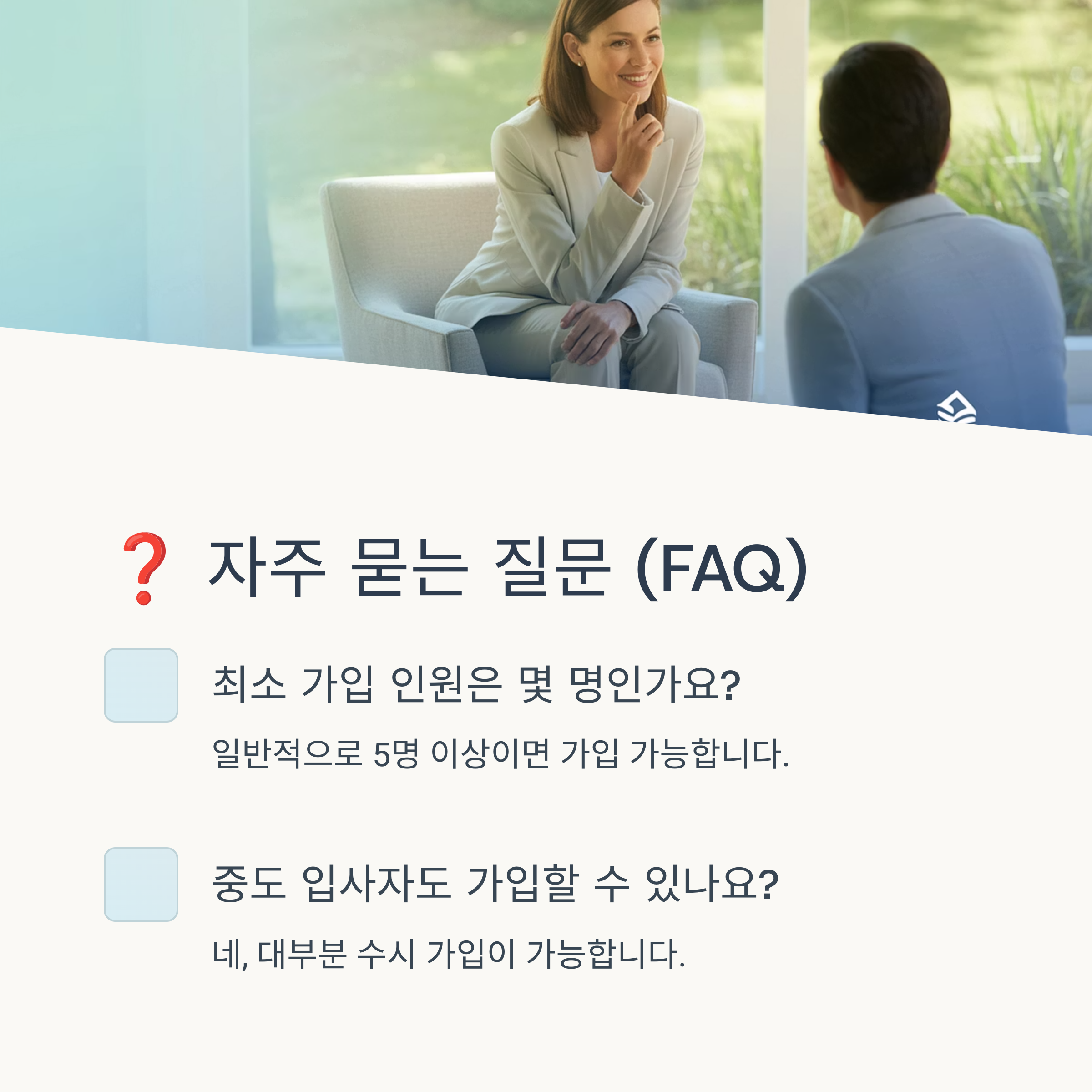| 사업장 특성 | 규모, 예산, 의무 가입 여부 | 가입 가능한 상품 및 법적 요건 충족 |
