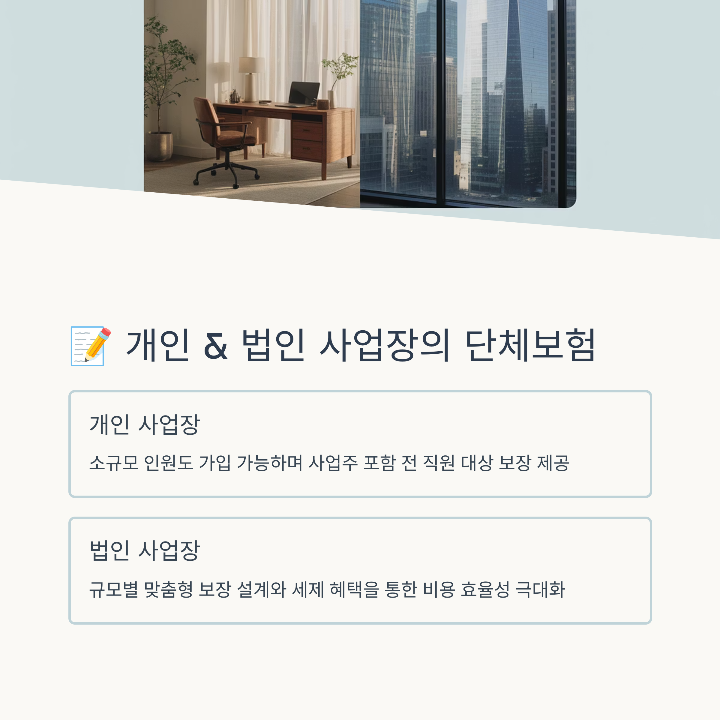 자, 그럼 다음은 ‘개인사업장과 법인사업장’에서의 단체보험 필요성에 대해 좀 더 구체적으로 알아볼 차례예요. 📝