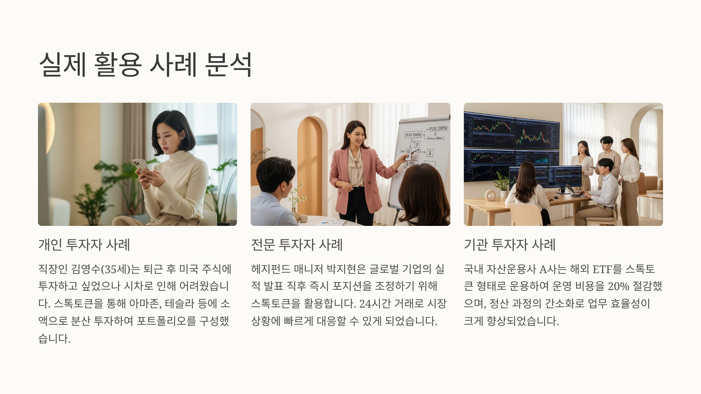 이처럼 스톡토큰은 단순한 고수익 투자 수단이 아니라, 시간에 제약받는 사람이나 초보자, 혹은 실전 대응이 필요한 전문가까지 다양한 유형의 투자자에게 맞춤형 도구가 될 수 있어요. 누구에게나 열려 있는 새로운 길인 셈이죠. 🛤️