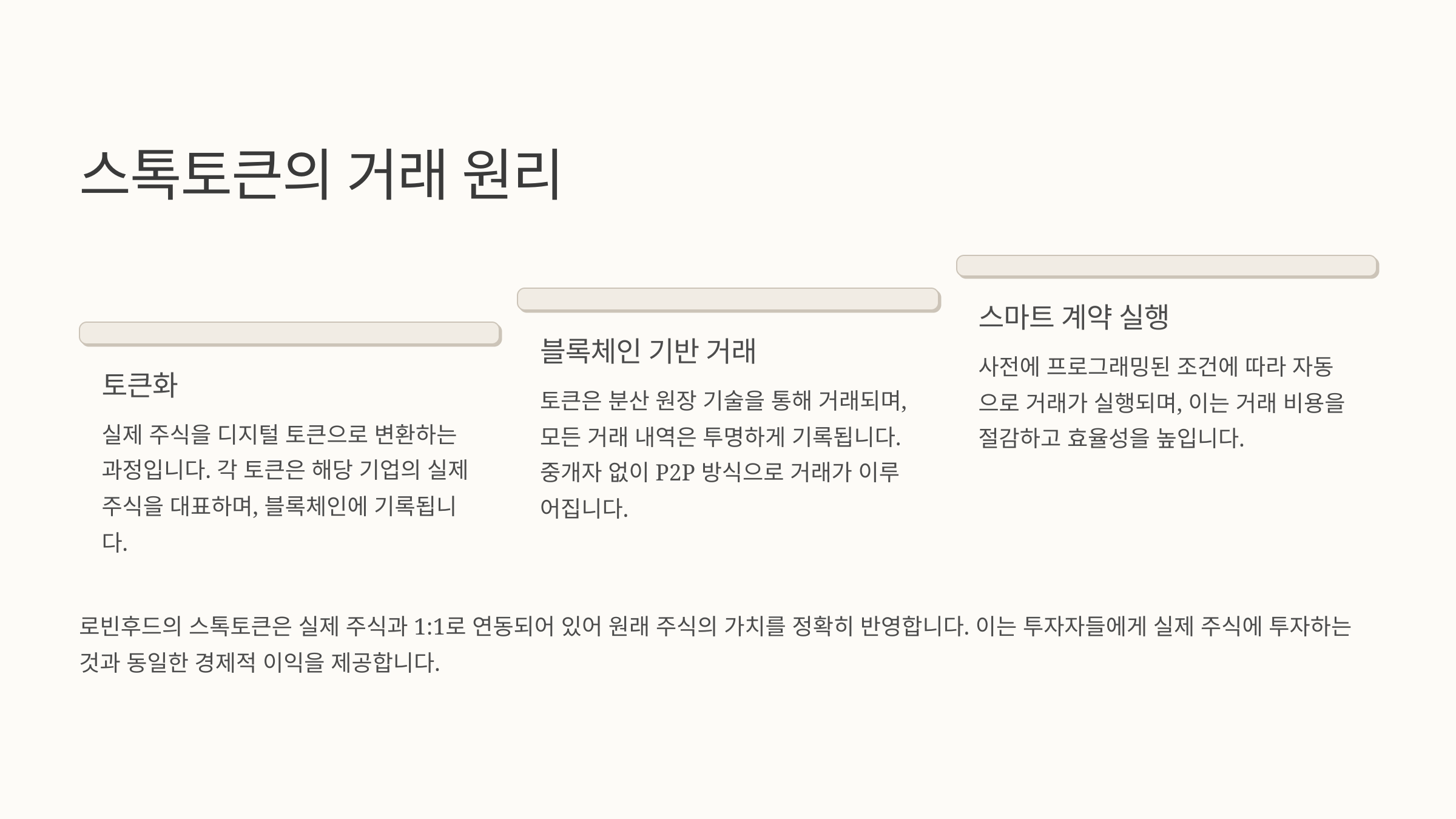 | 4. 관리 | 로빈후드가 주식 실물 관리 및 토큰 발행 |