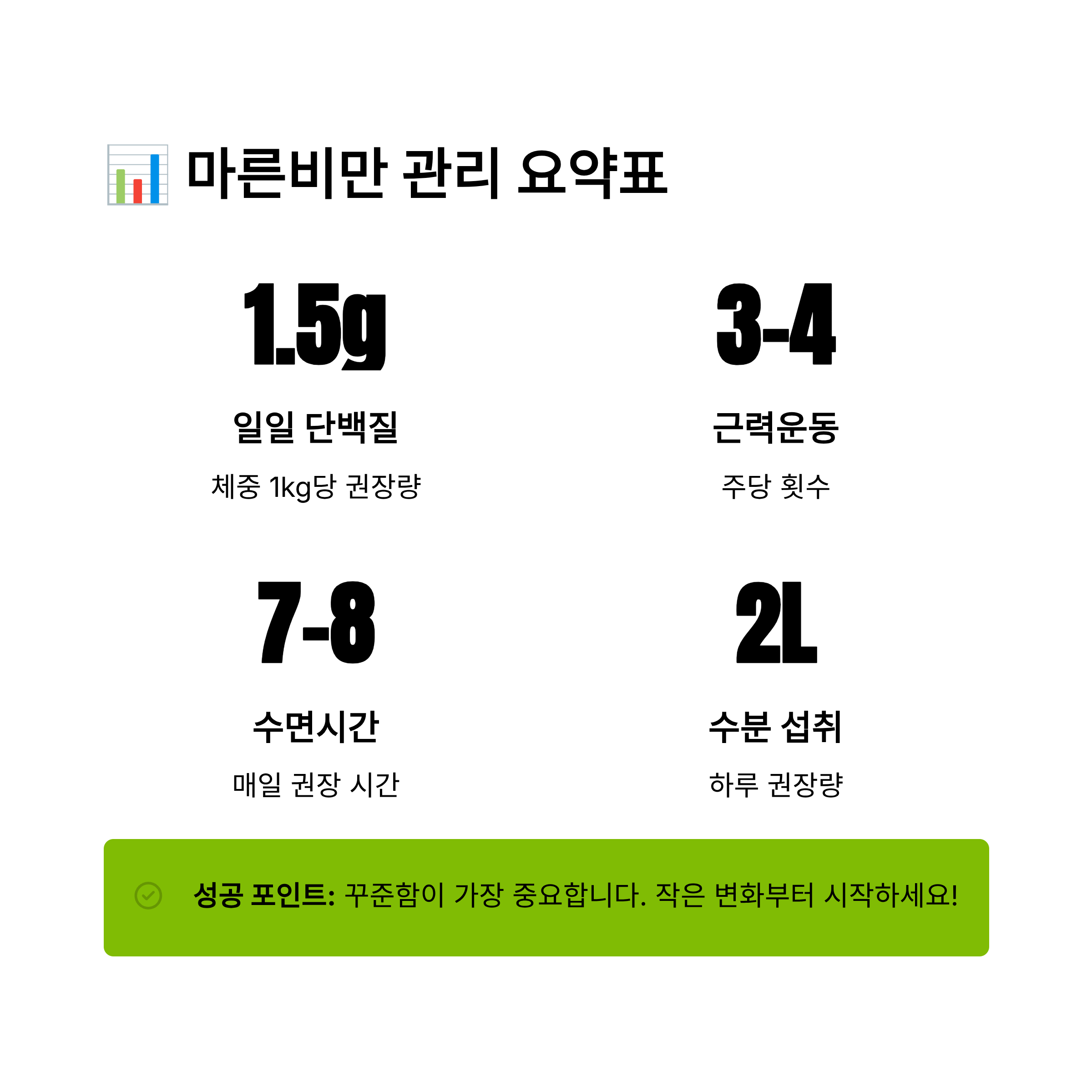 마른 비만을 극복하기 위해서는 이러한 복합적인 원인들을 정확히 파악하고, 전반적인 생활 습관 개선에 초점을 맞춰야 합니다. 📝