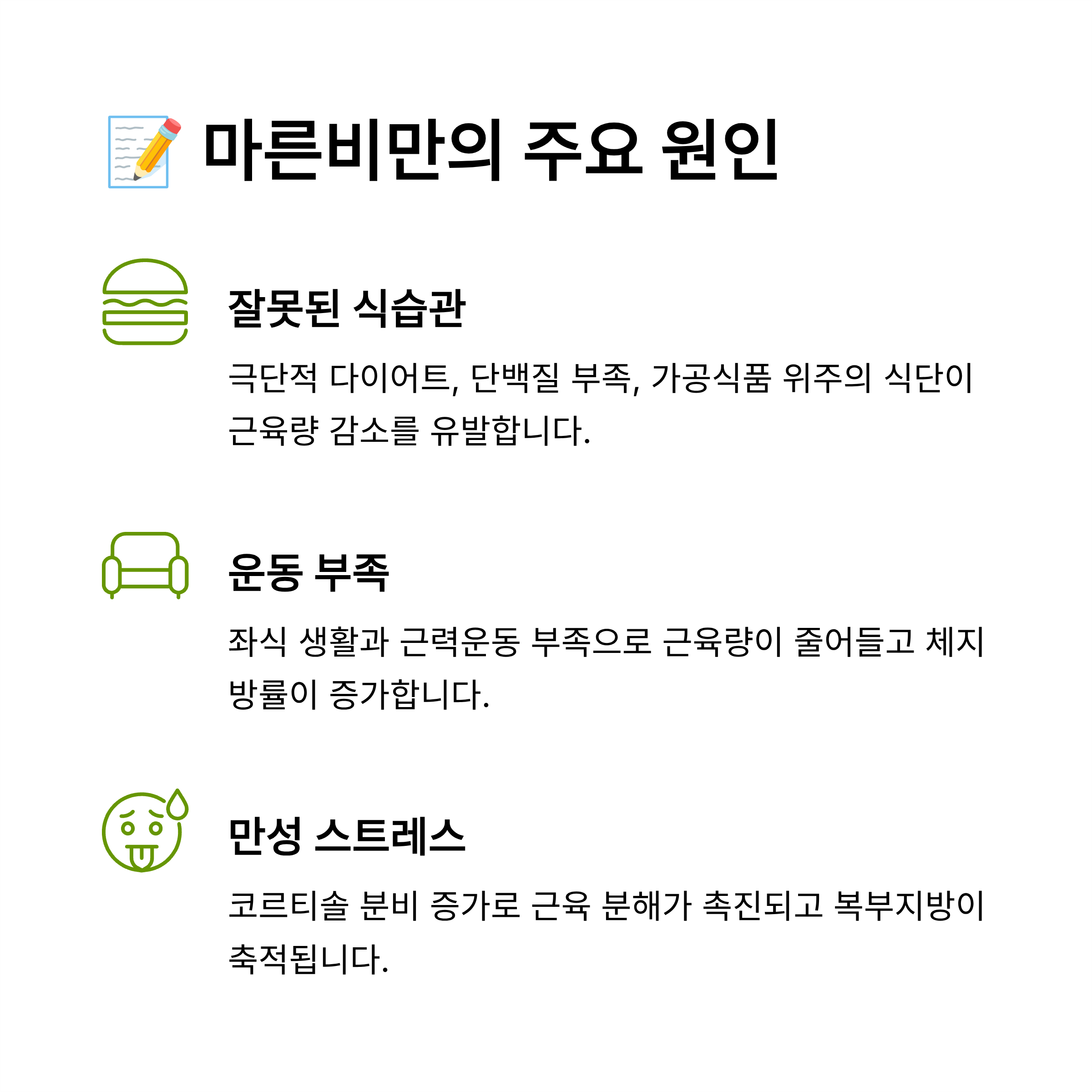 마른 비만은 잘못된 생활 습관에서 비롯되는 경우가 많습니다. 💡