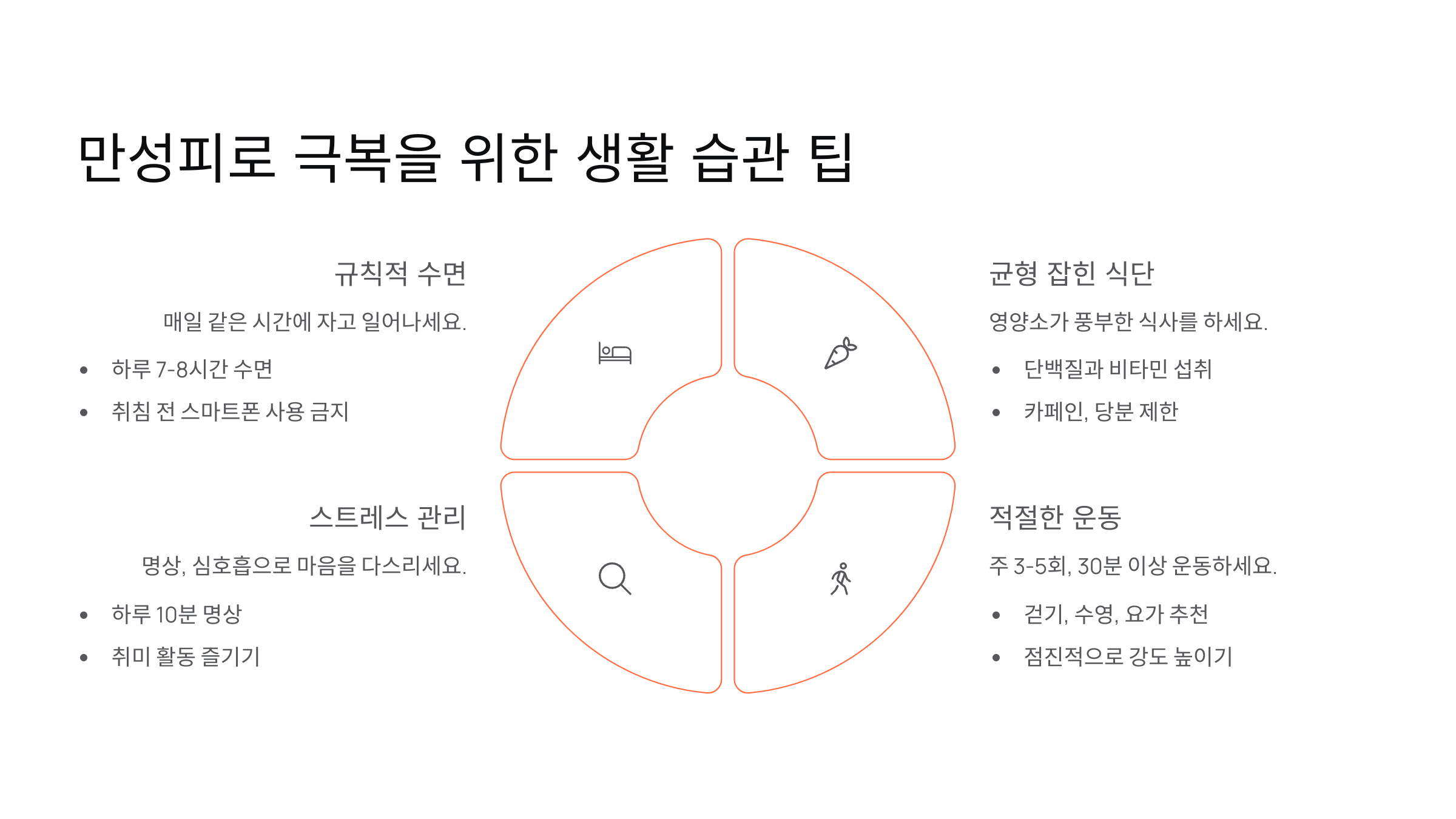 수면, 영양, 운동, 스트레스 관리 등 생활습관을 점검하고, 증상이 지속된다면 반드시 전문가의 도움을 받으세요.