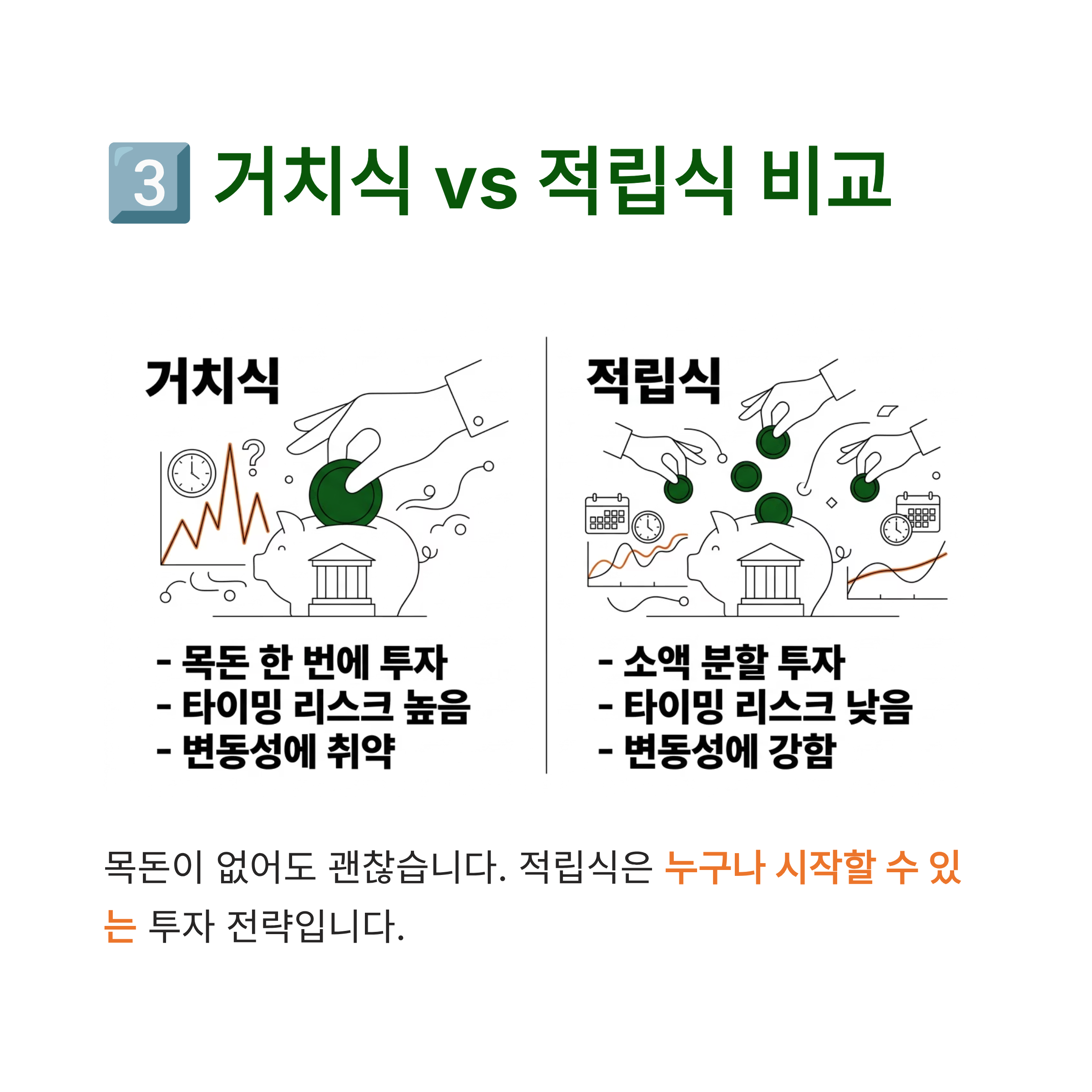 👉 대다수의 개인 투자자는 시장의 저점을 맞출 수 없으므로, 적립식 투자가 실질적인 정답이 되는 경우가 많습니다.