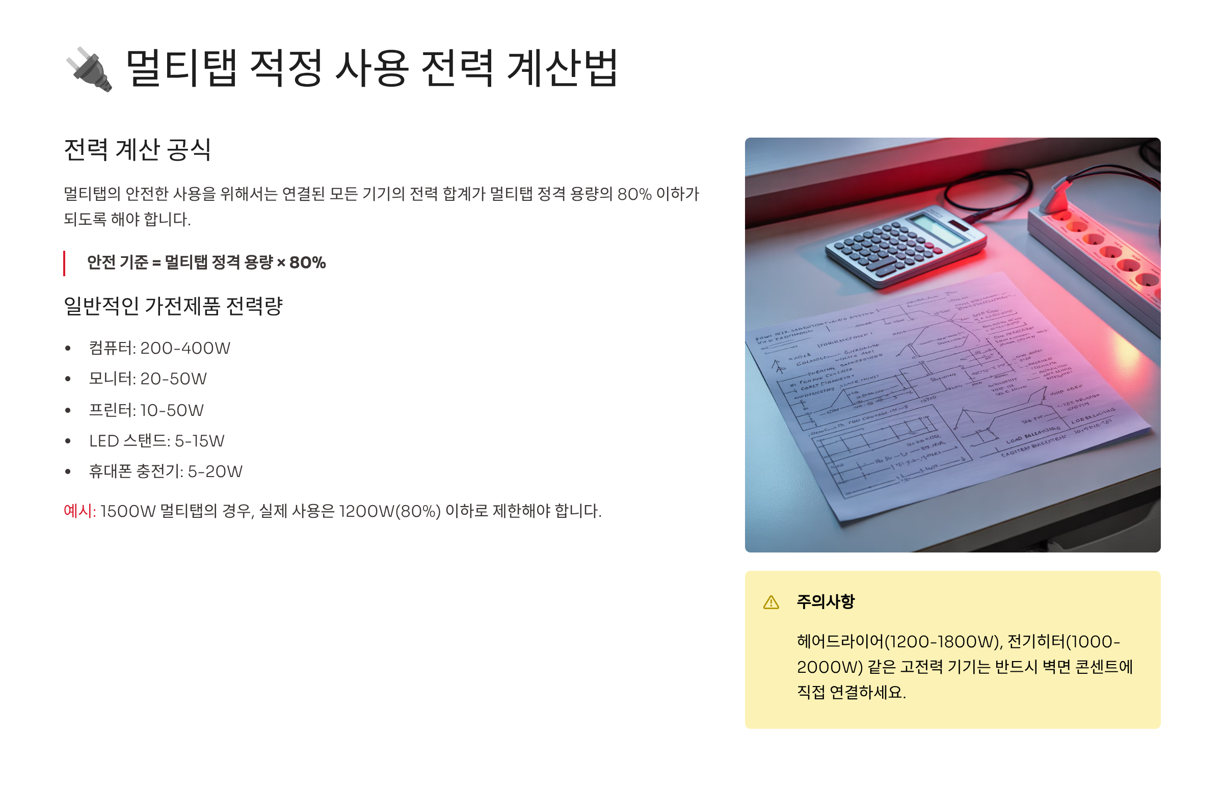 🔌 2. 멀티탭 적정 사용 전력 계산법