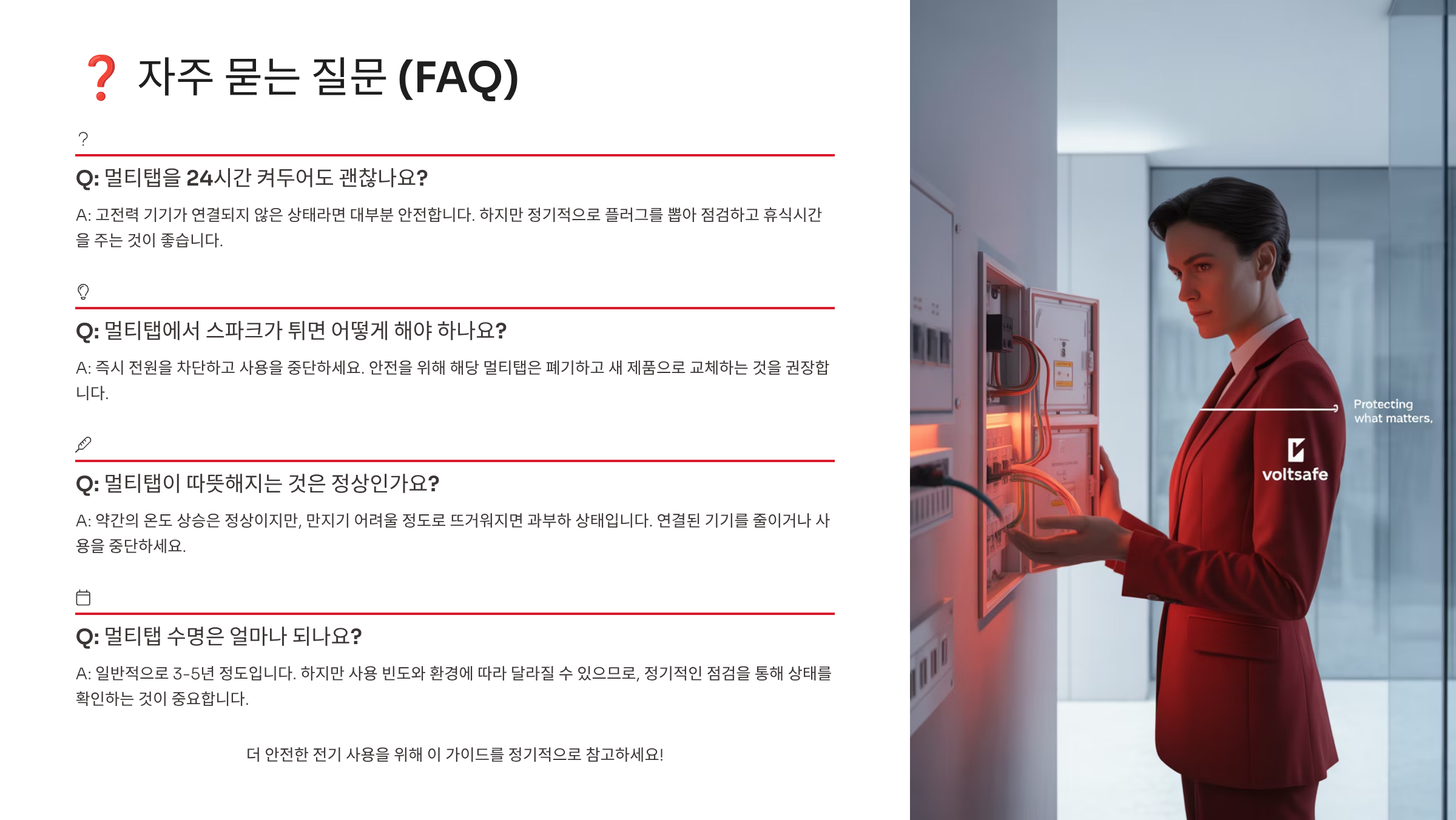 내가 생각했을 때, 멀티탭은 편리함의 상징이지만 동시에 '불씨'가 될 수도 있는 만큼 제대로 알고 사용하는 게 정말 중요하다고 느꼈어요. 🙏