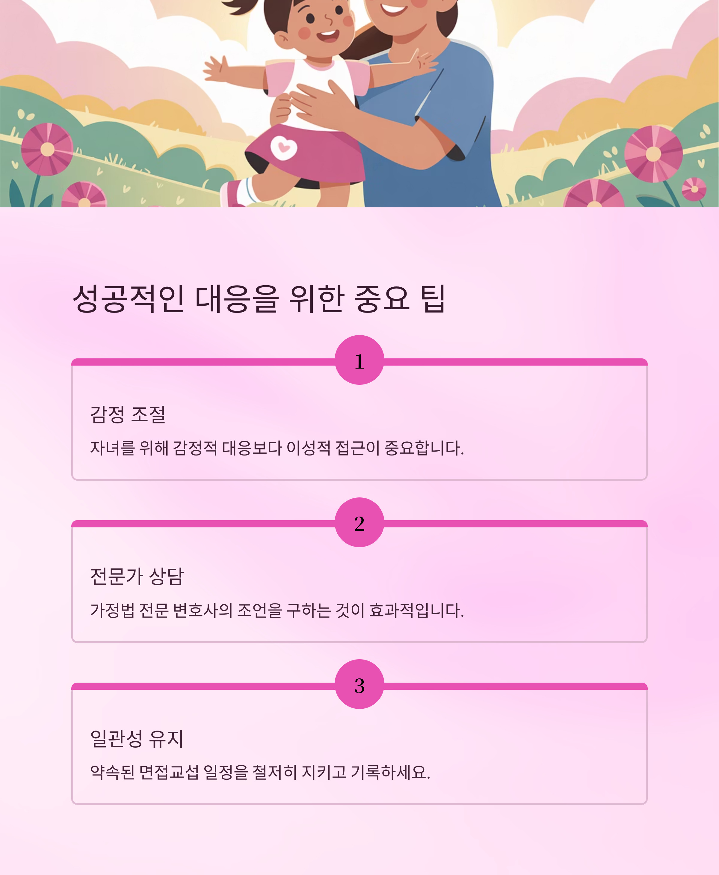 면접교섭권 거부 대응은 복잡하고 감정적인 과정이 될 수 있어요. 성공적인 해결을 위한 몇 가지 중요한 팁을 알려드릴게요. 이 팁들을 잘 활용하면 불필요한 마찰을 줄이고, 자녀의 복리를 지키는 데 큰 도움이 될 거예요.