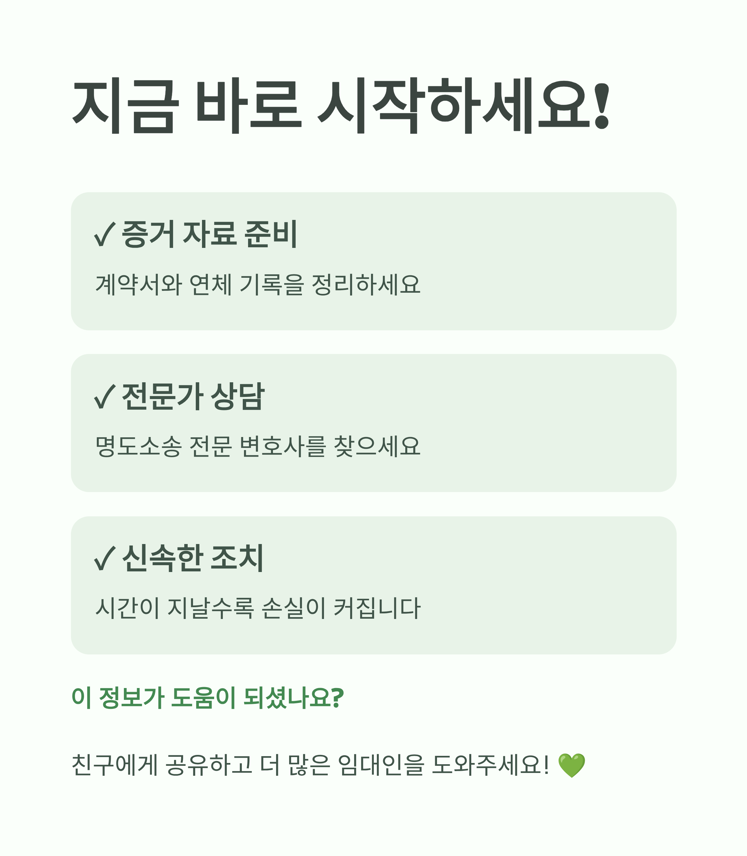 명도소송은 최후의 수단이며, 미리미리 분쟁을 예방하는 것이 가장 중요합니다. ⚖️