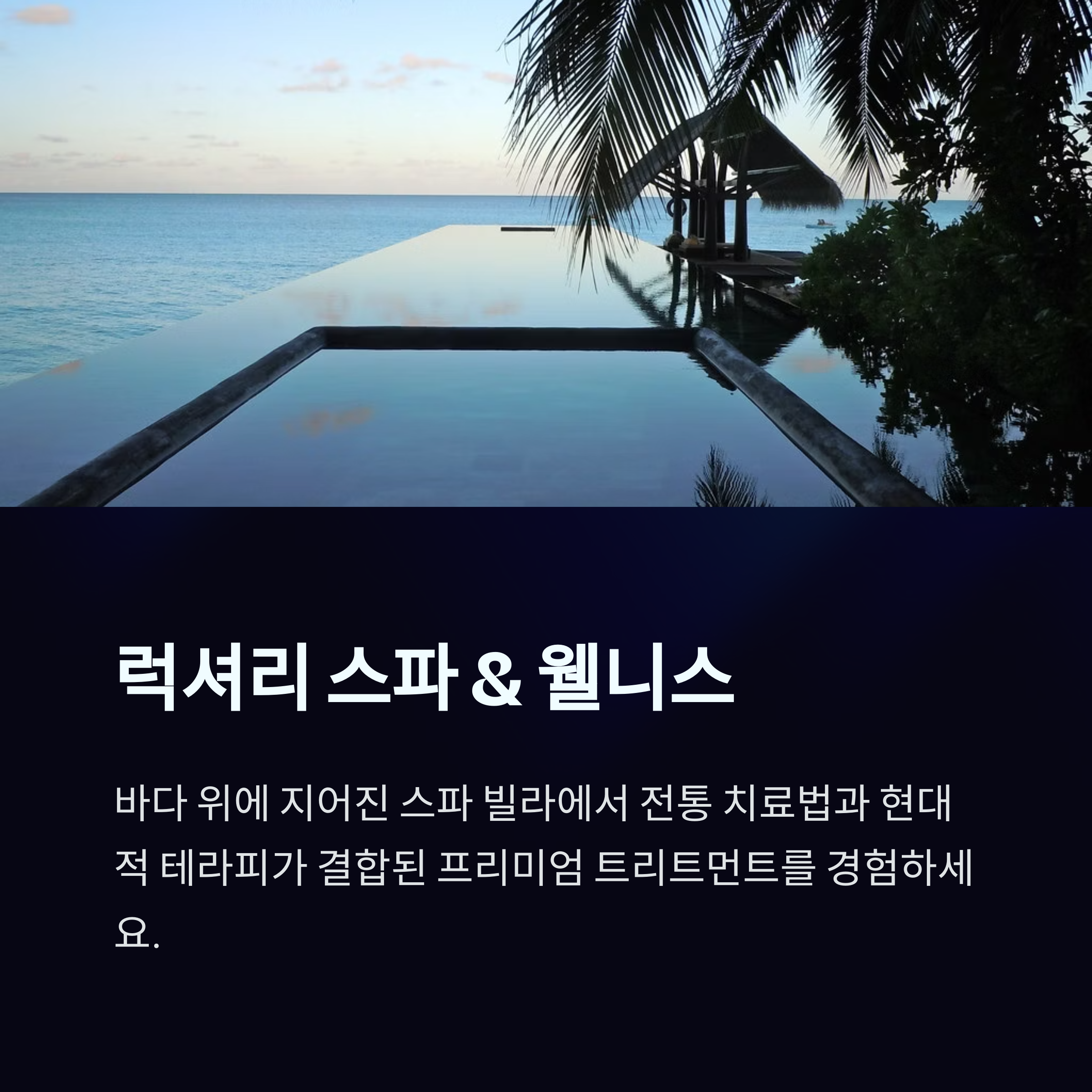 몰디브의 럭셔리 리조트들은 단순한 스파를 넘어, 몸과 마음의 진정한 회복을 돕는 웰니스 프로그램을 제공합니다.