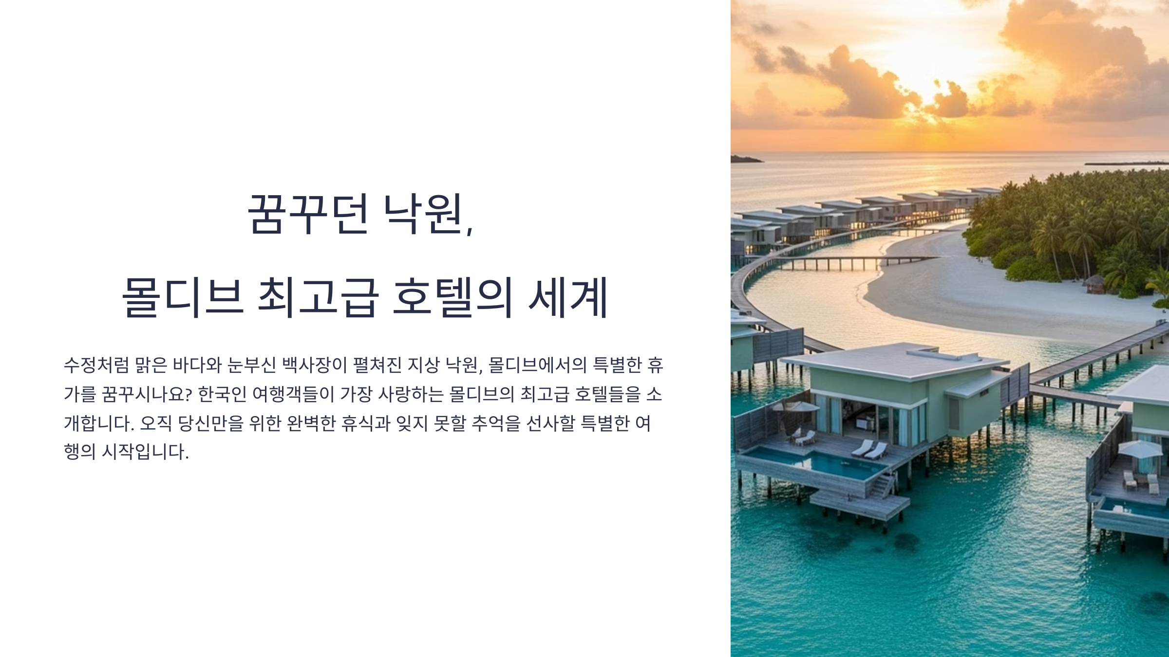 | 몰디브 베스트 오버워터 빌라 예약 완전 가이드 💎🌊 (1) | 2025.07.14 |