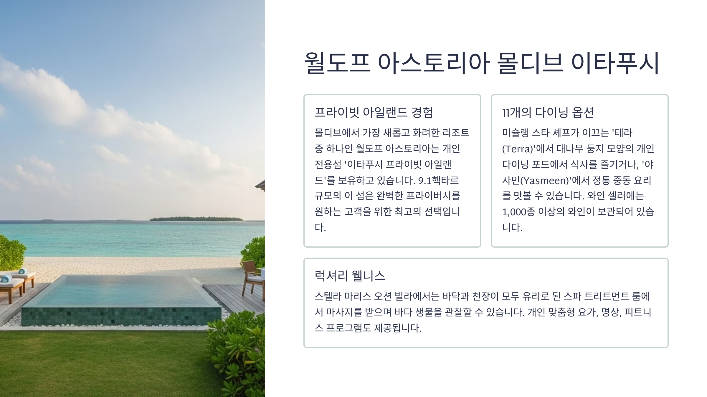 4. 월도프 아스토리아 몰디브 이타푸시 (Waldorf Astoria Maldives Ithaafushi) 🌴