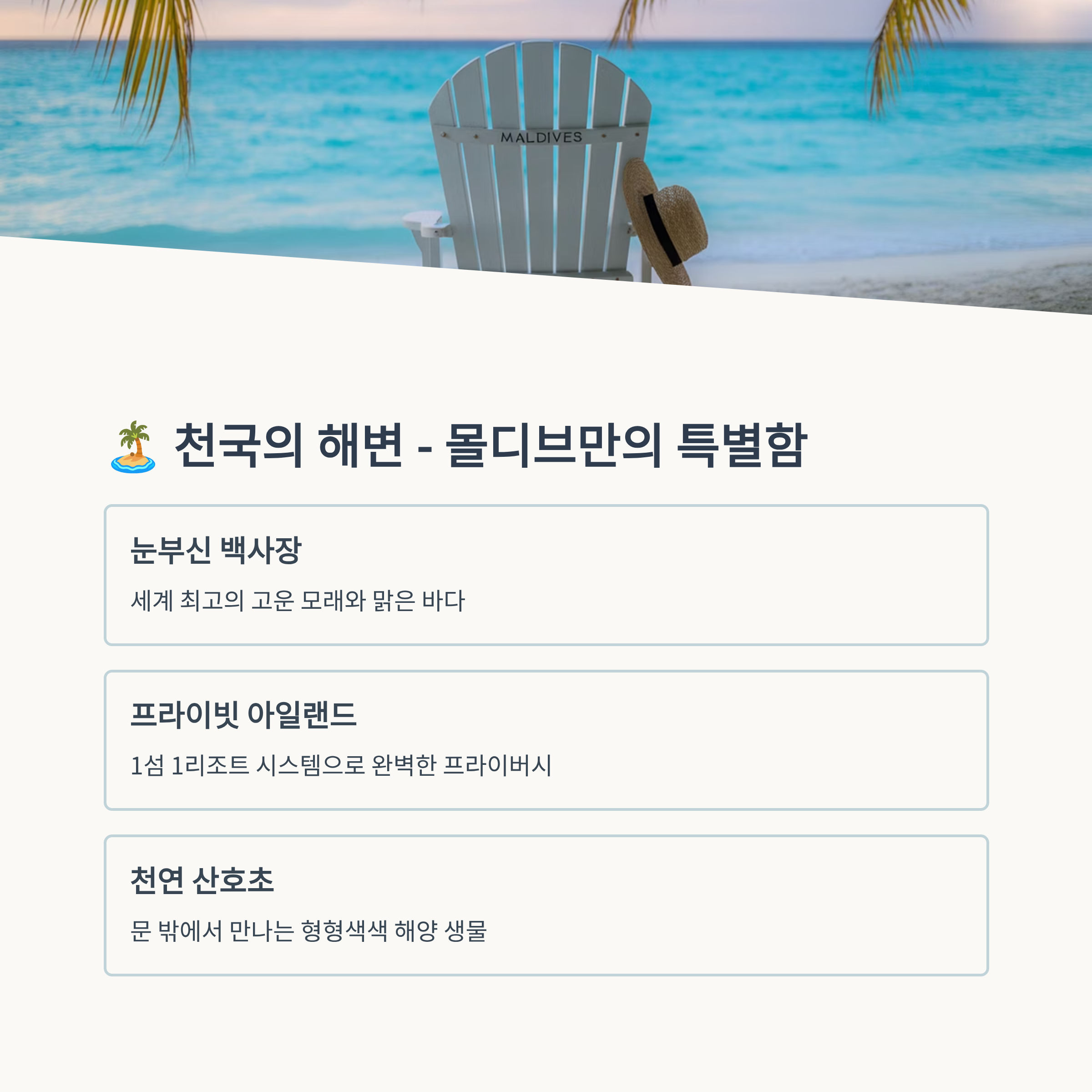🏖️ 몰디브 주요 해변 리조트 특징 비교