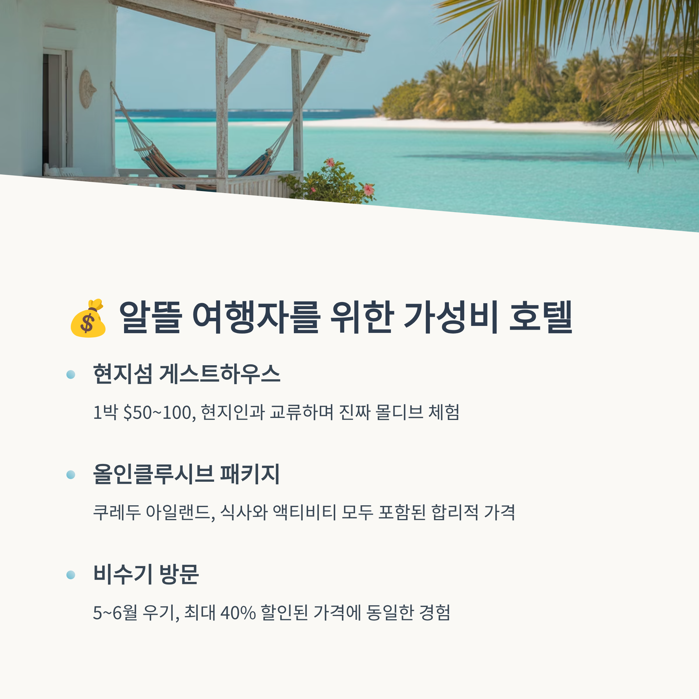 🏨 몰디브 가성비 숙소 비교표