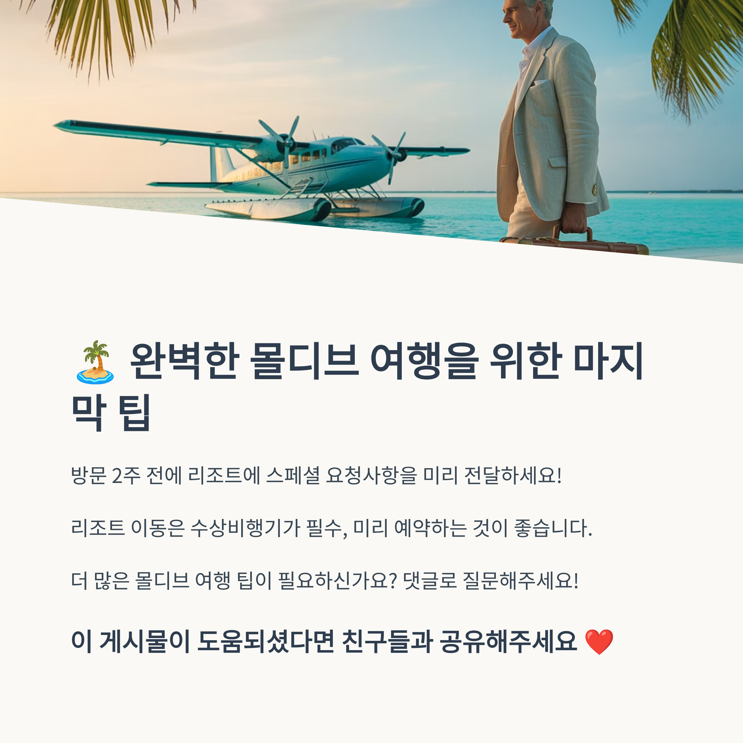 몰디브는 단지 아름다운 여행지가 아니에요. 사랑이 더 깊어지는 곳, 둘만의 세계가 만들어지는 섬이에요. 허니문이라면 반드시 한 번은 가봐야 할 이유가 충분하답니다.