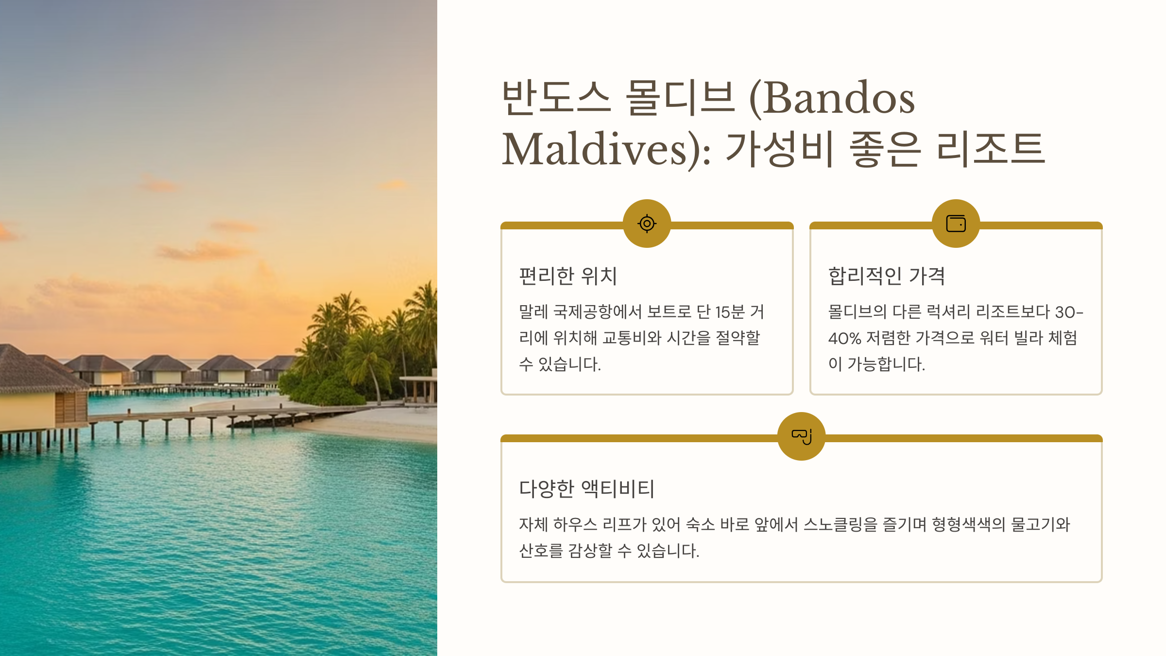 몰디브는 세계적인 럭셔리 휴양지로 손꼽히지만, '비싸다'는 선입견 때문에 망설이는 분들이 많습니다. 물론 억 소리 나는 초호화 리조트도 많지만, 조금만 찾아보면 합리적인 가격으로도 몰디브의 아름다움을 충분히 만끽할 수 있는 방법들이 있답니다!