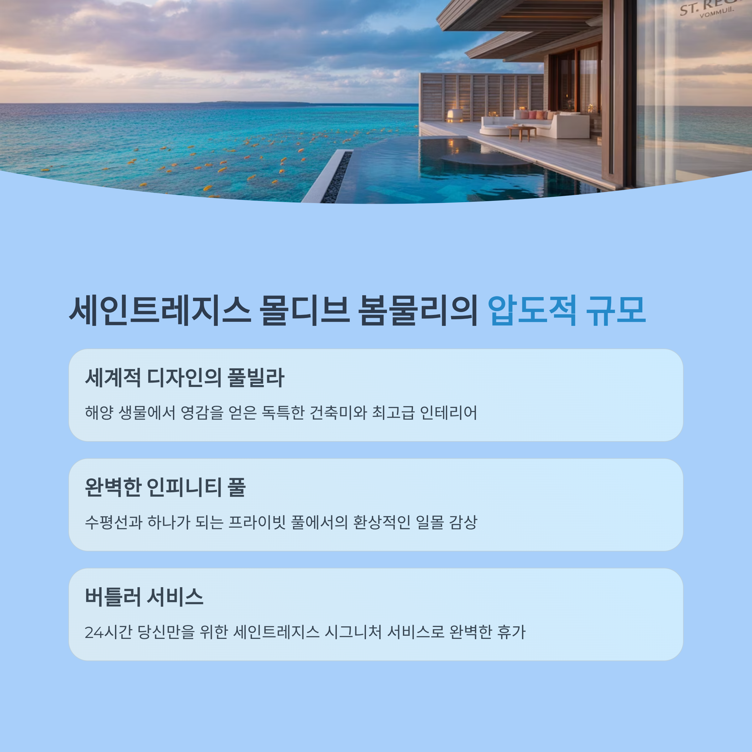 - 2. 세인트레지스 몰디브 봄물리 (The St. Regis Maldives Vommuli): 압도적 규모의 풀빌라 🐳
