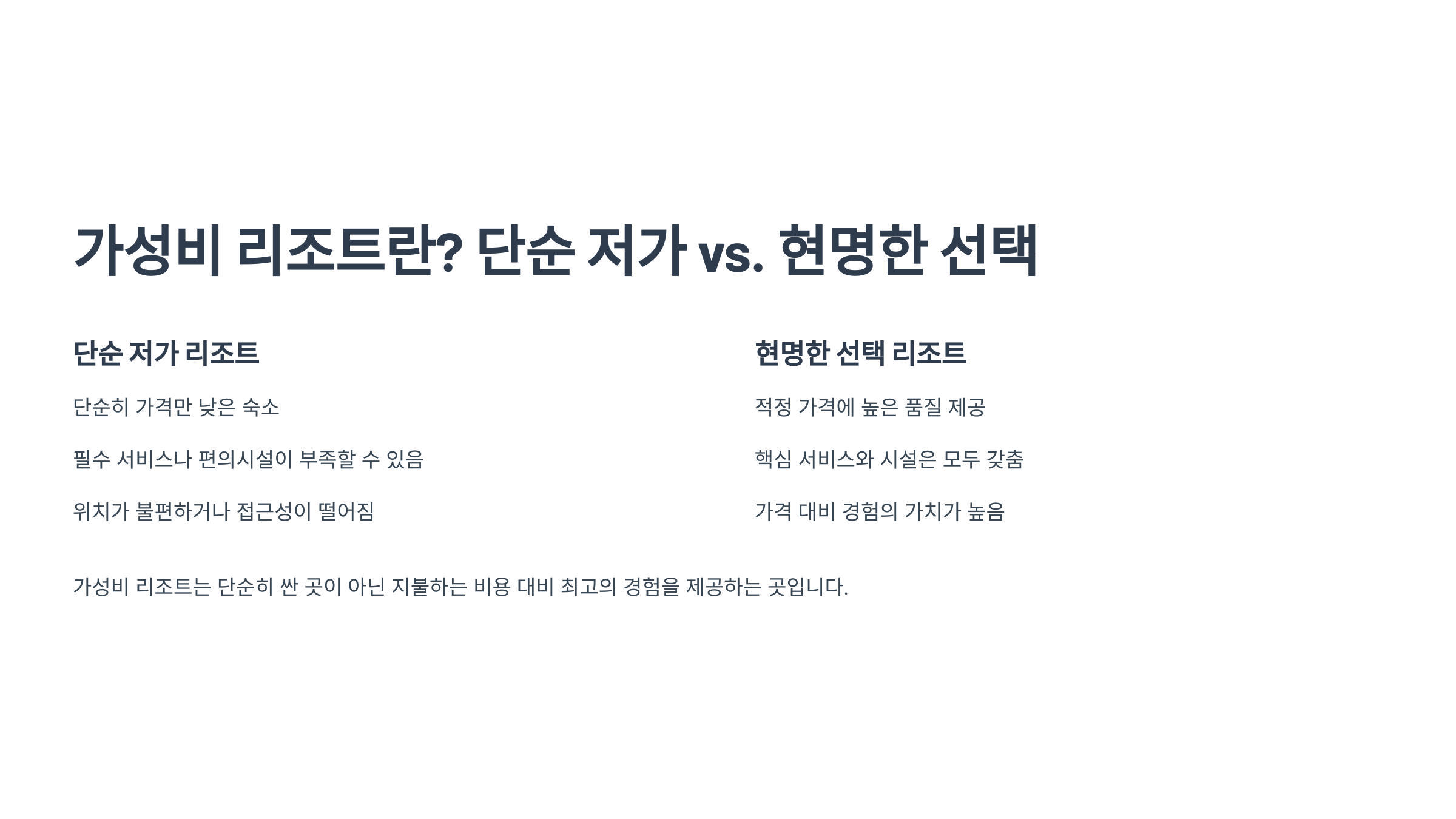 ① 🤔 '가성비 리조트'란? (단순 저가 vs. 현명한 선택)