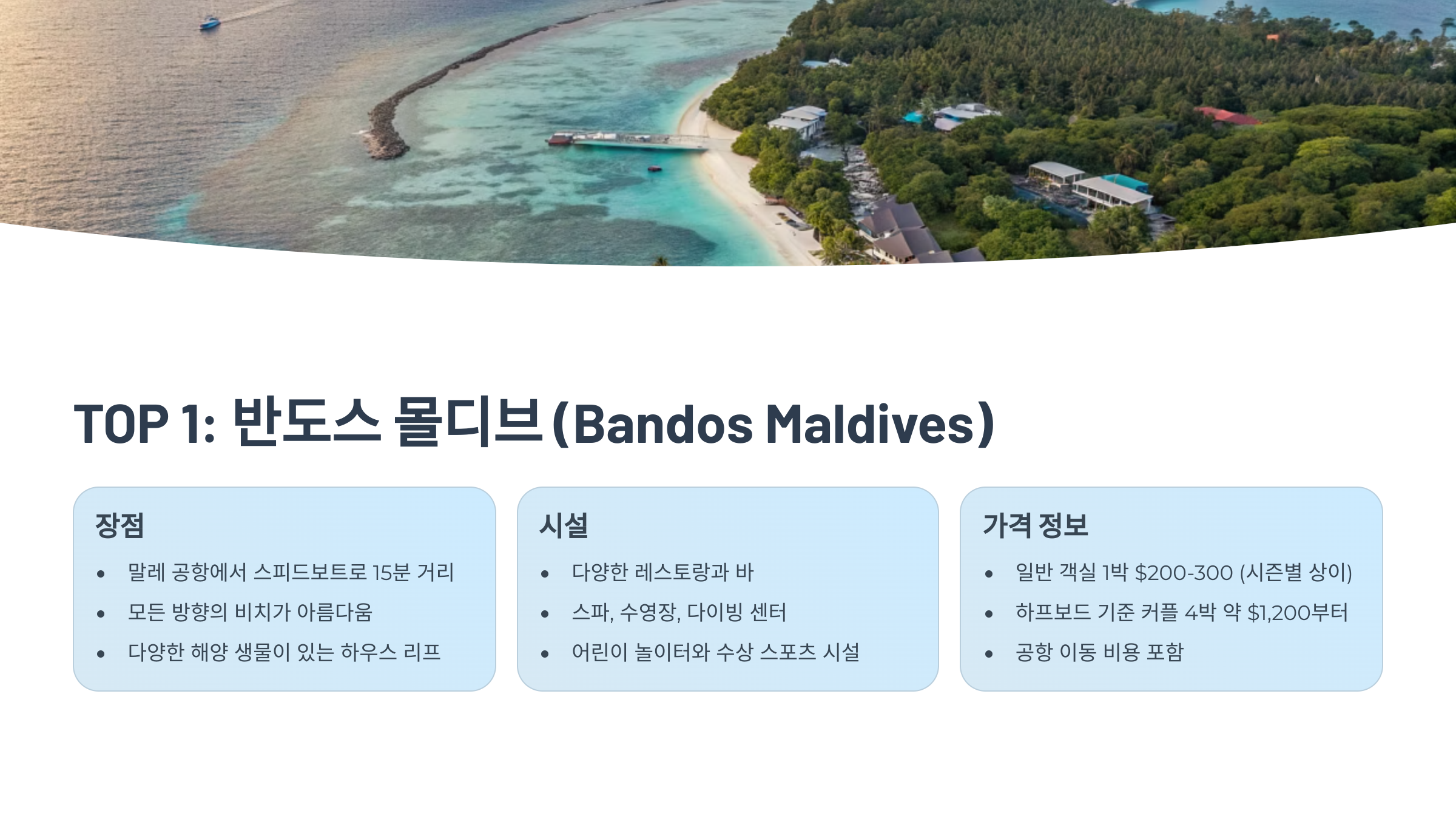 - ③ 🥇 TOP 1: 반도스 몰디브 (Bandos Maldives)