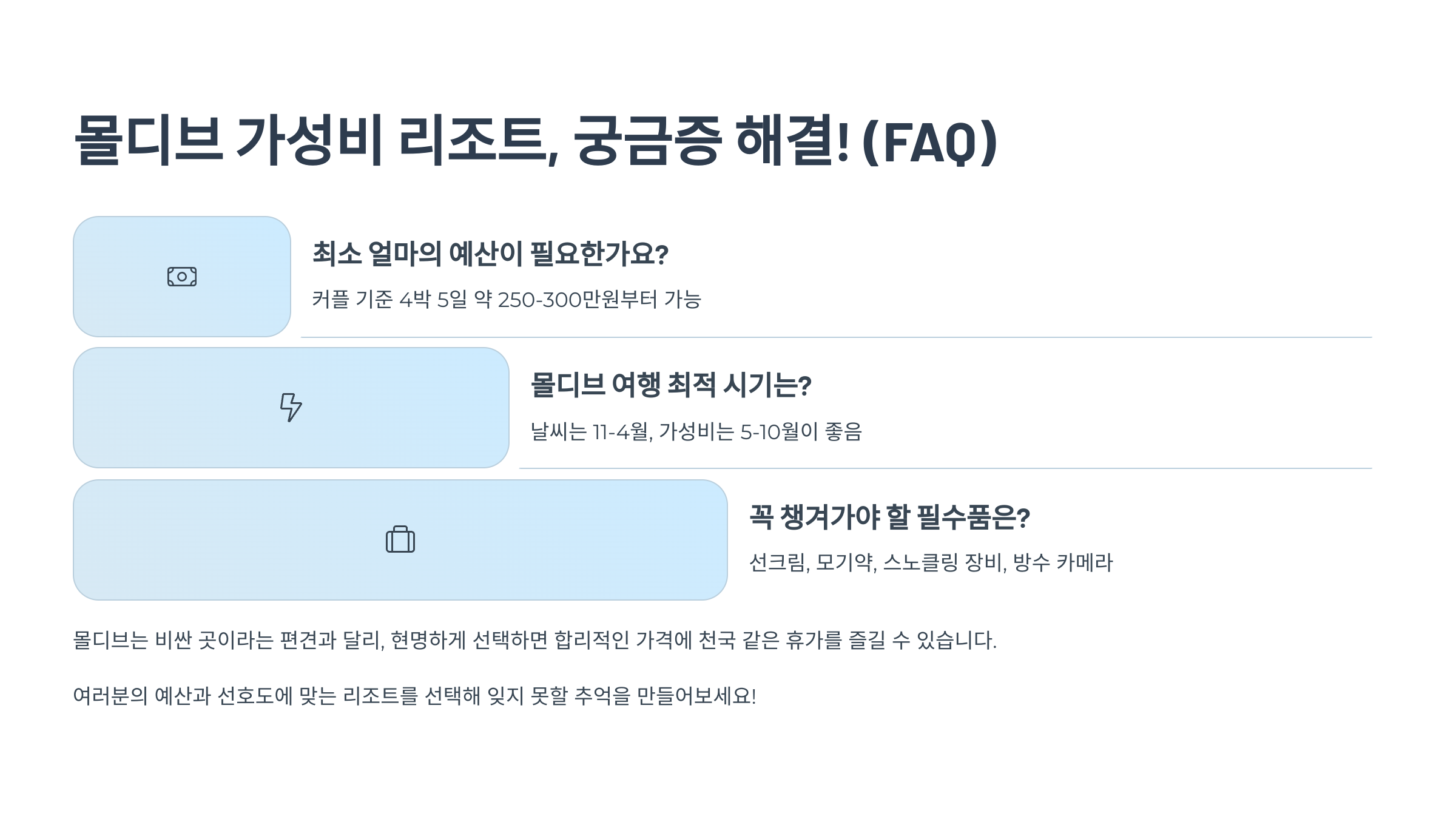 ⑨ ❓ 몰디브 가성비 리조트, 궁금증 해결! (FAQ)