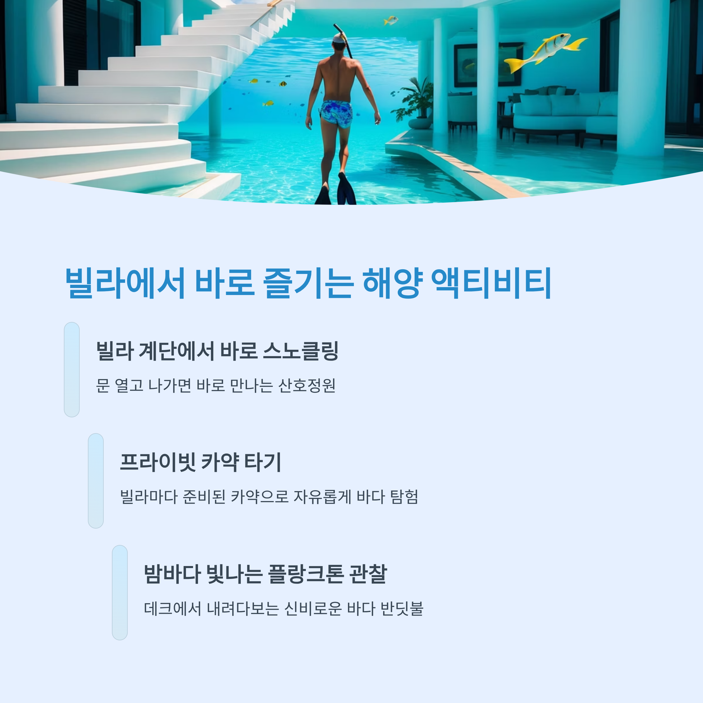 | 바다 접근성 | 빌라 데크에서 바로 바다로 연결 |