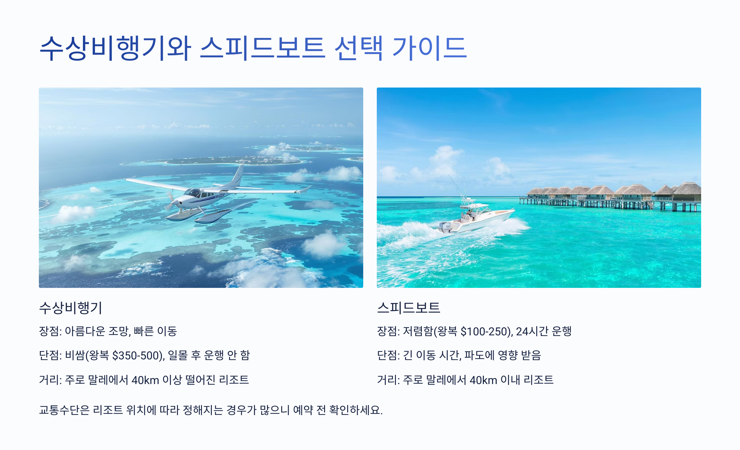 🛫 몰디브 리조트 교통편 비교표 🚤