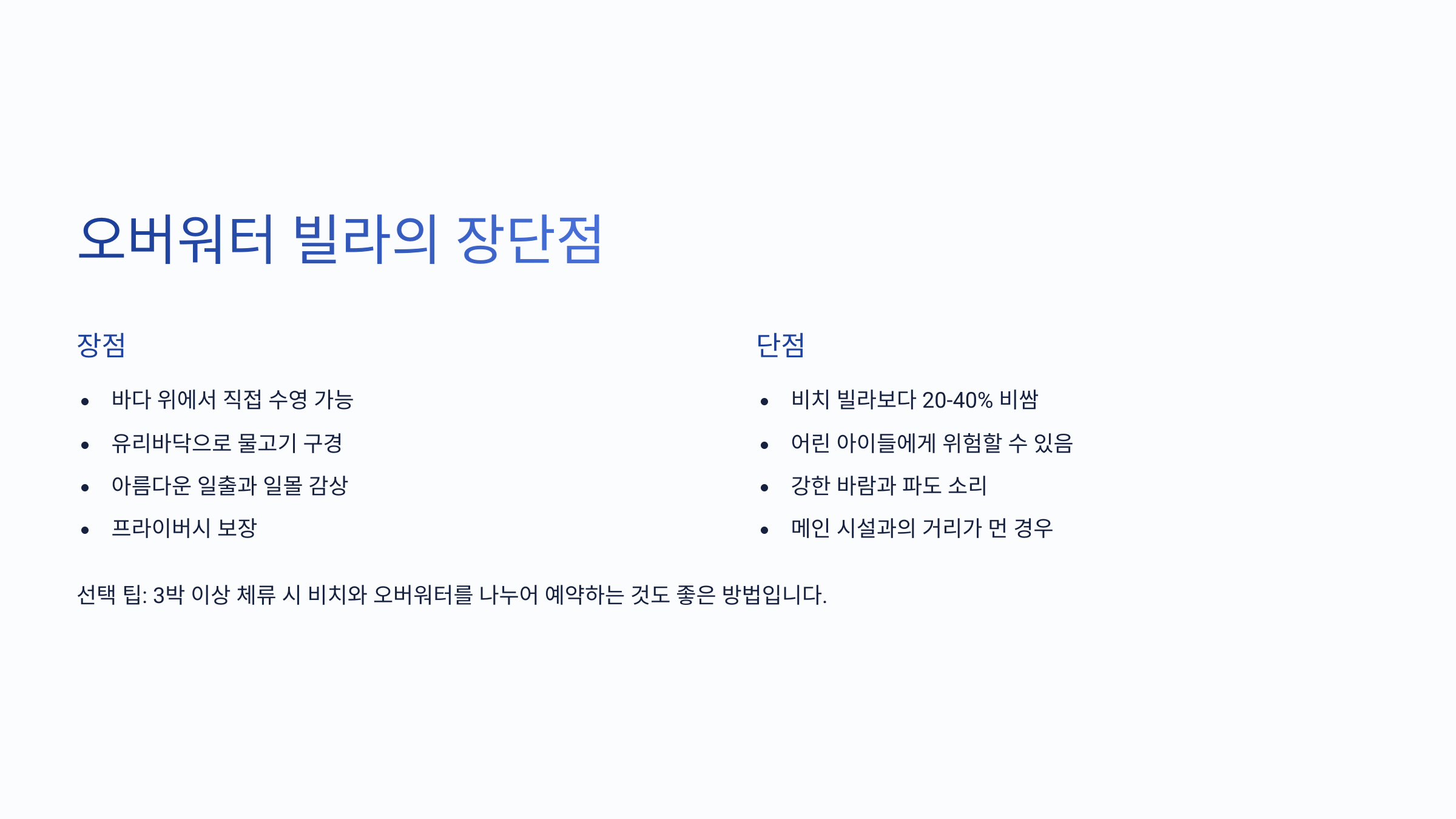 오버워터 빌라의 장단점 🌅