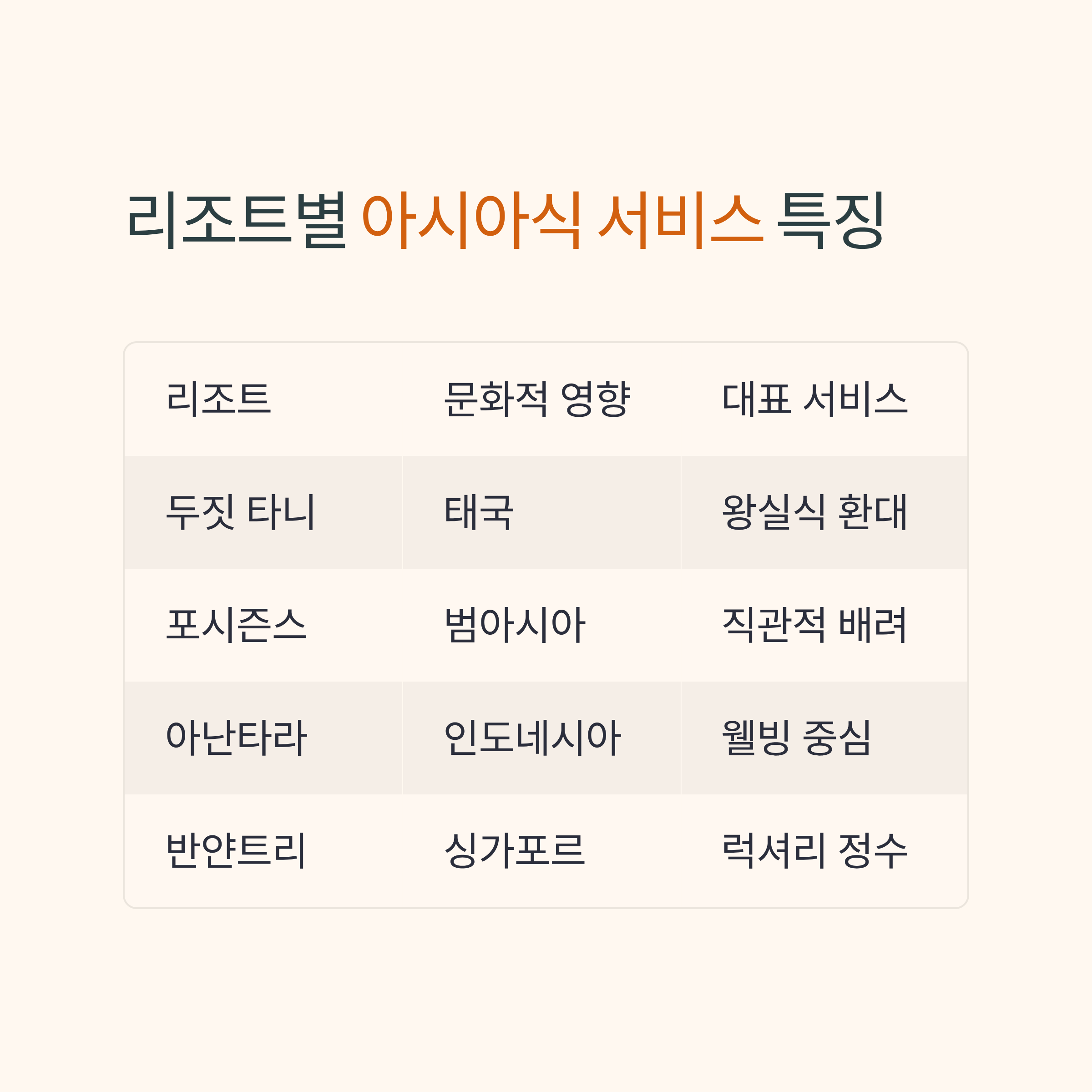 📋 아시아식 서비스 리조트 선택 팁