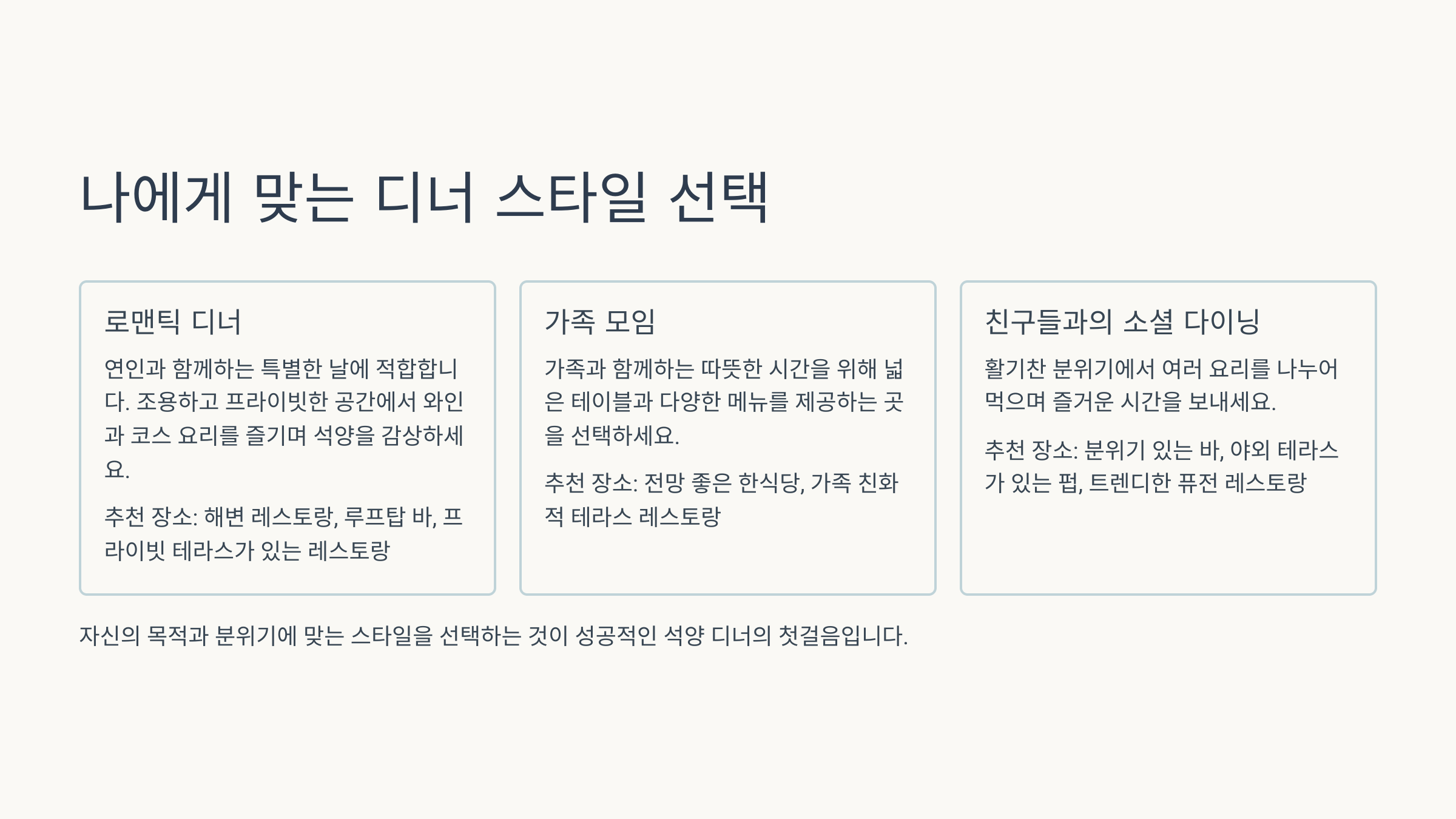 💡 나에게 맞는 디너 스타일 선택