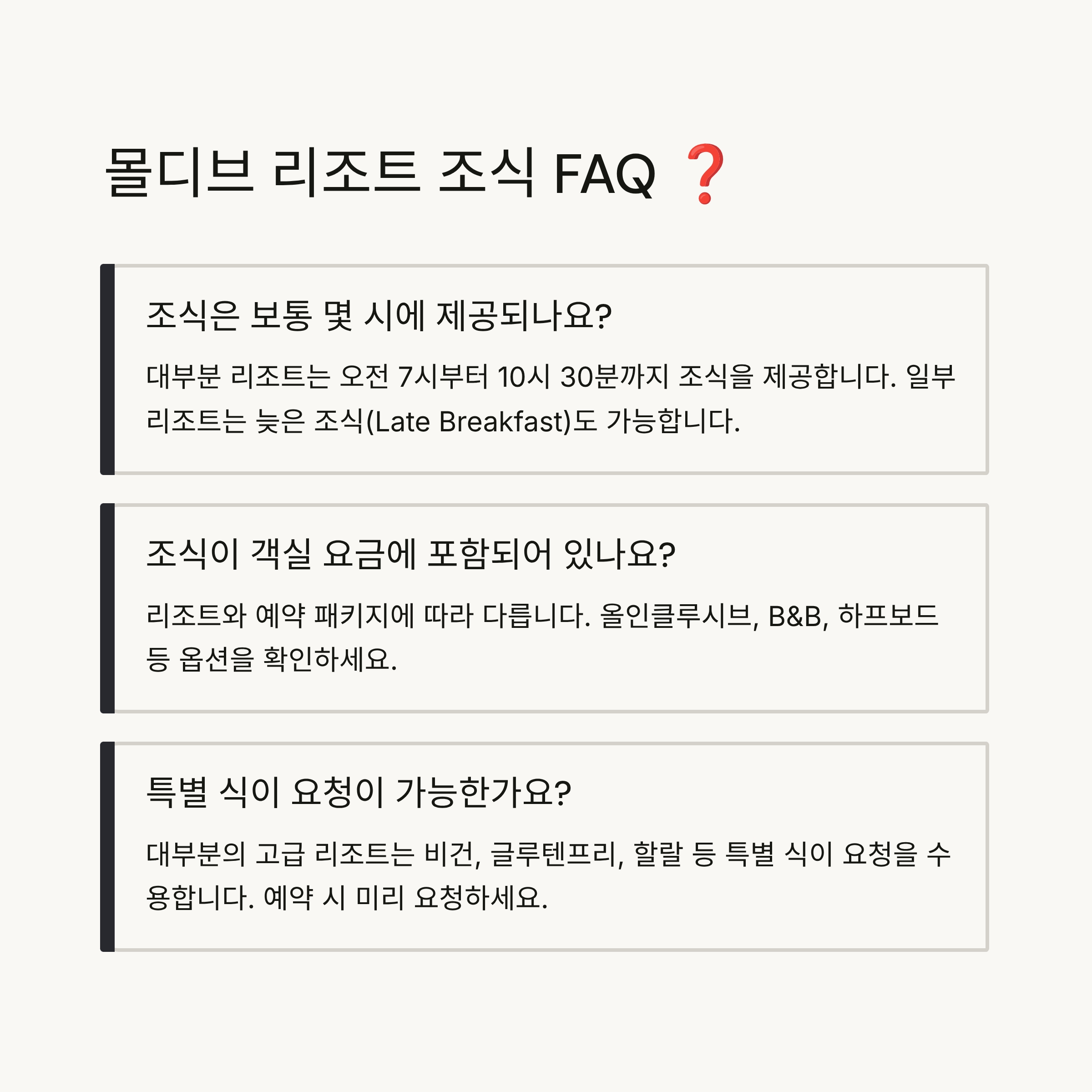 Q2. 몰디브에서 조식만 예약해도 되나요?