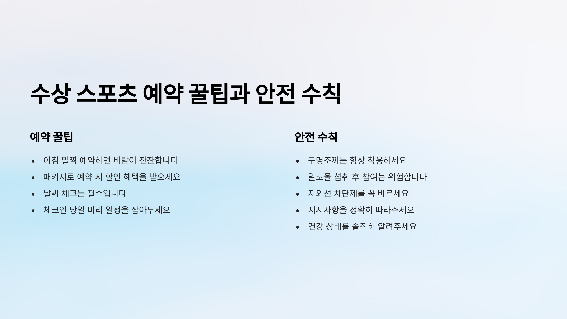 수상 스포츠 예약 꿀팁과 안전 수칙