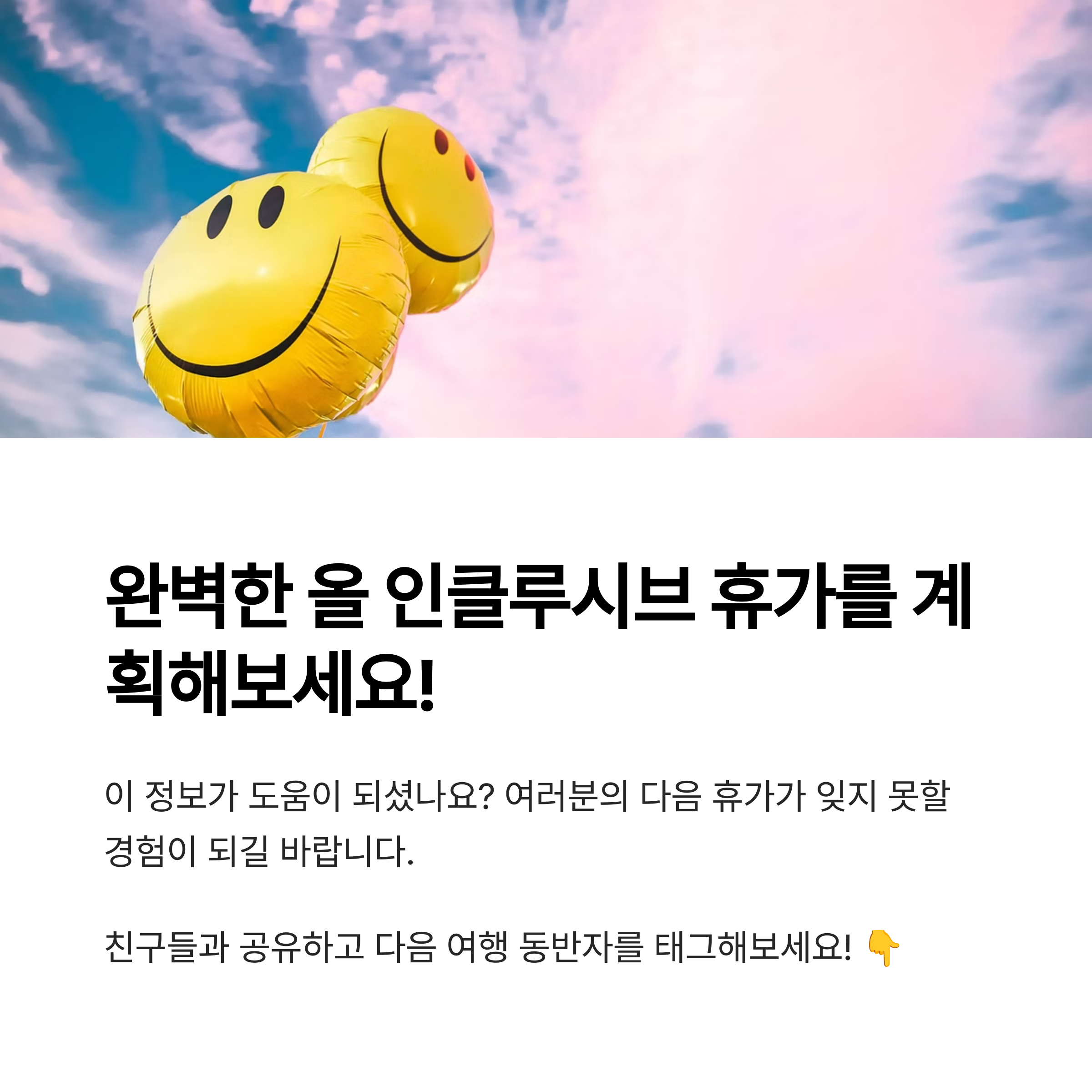 | 약관 확인 | 올 인클루시브 포함 내용, 24시간 범위 꼼꼼히 체크 | 예상치 못한 추가 비용 방지 |