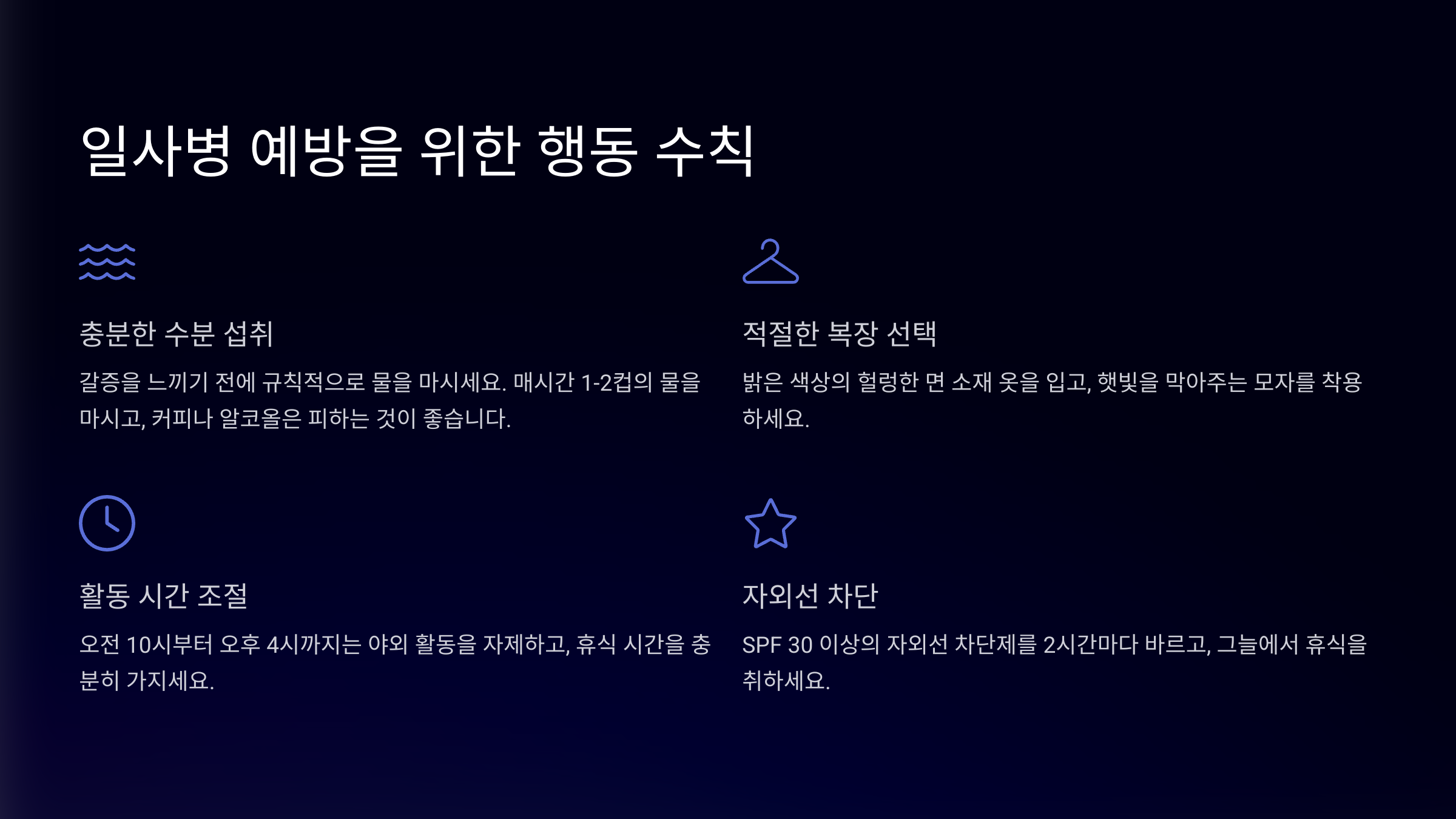 일사병 예방을 위한 행동 수칙 🛡️
