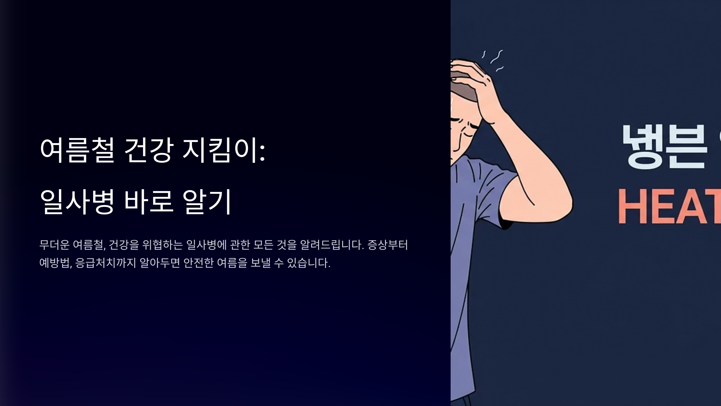 매년 여름, 무더위가 기승을 부릴 때마다 우리는 건강을 위협하는 불청객, '일사병'에 대한 경각심을 가져야 합니다. "나는 괜찮겠지" 하는 안일한 생각은 금물! 일사병은 누구에게나 찾아올 수 있는 여름철 대표 온열 질환이에요.