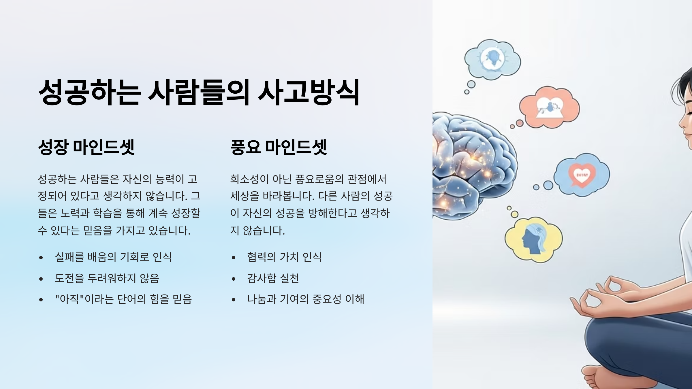 🧭 성공 사고방식 핵심 비교