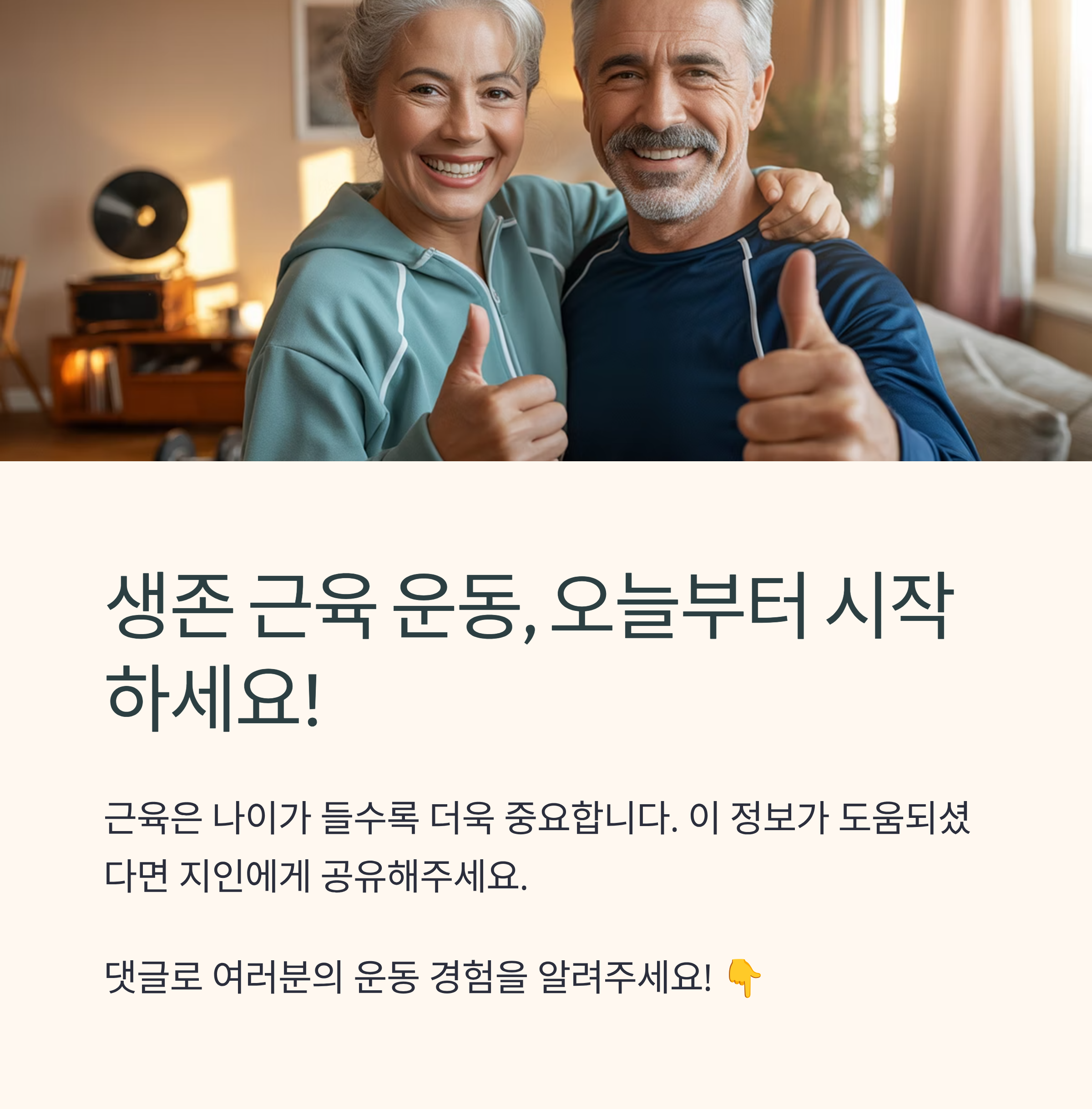 안전하고 즐겁게 꾸준히 운동하는 것이 생존 근육을 지키는 가장 좋은 방법입니다. ✨