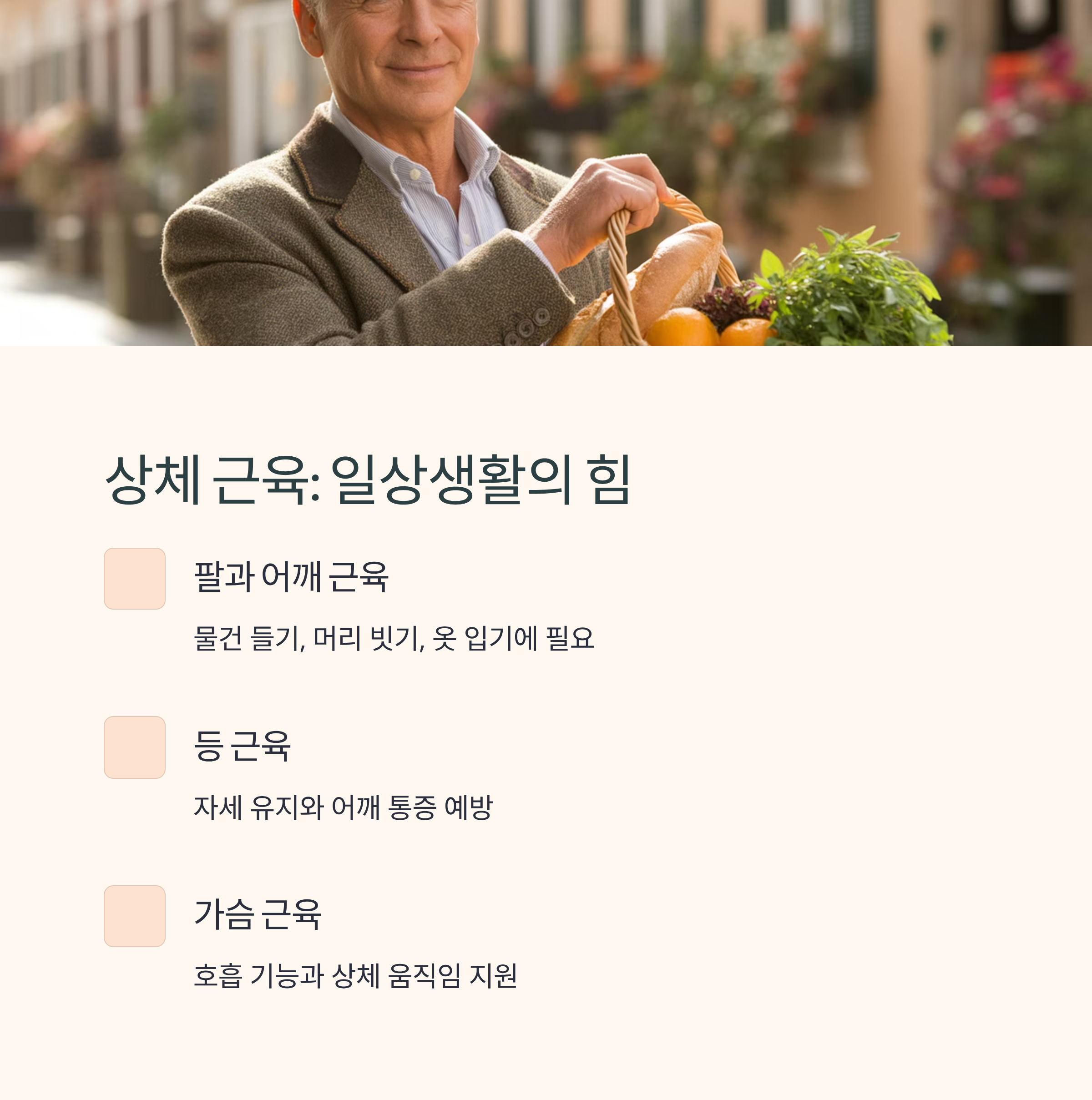 상체 근육은 일상생활의 편리함과 안전을 지켜주는 중요한 생존 근육입니다. 💪