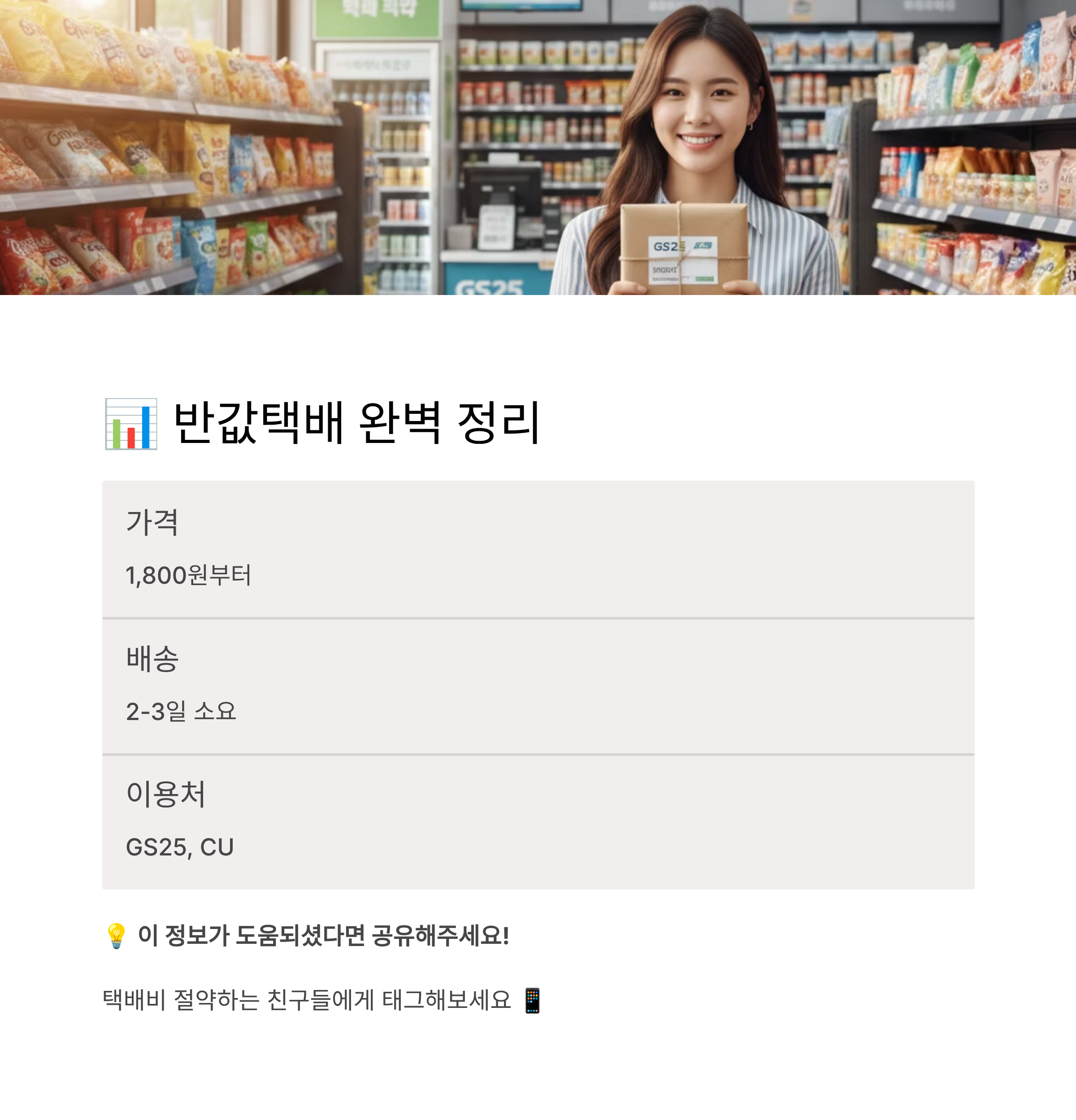 이 가이드는 GS25의 반값택배와 CU의 알뜰택배의 가격, 보내는 방법, 배송 기간, 그리고 이용 시 주의할 점까지 모든 것을 상세하게 알려드릴 것입니다. 이 글을 통해 택배비를 절약하고, 더욱 편리하게 물건을 주고받으시길 바랍니다! 😊