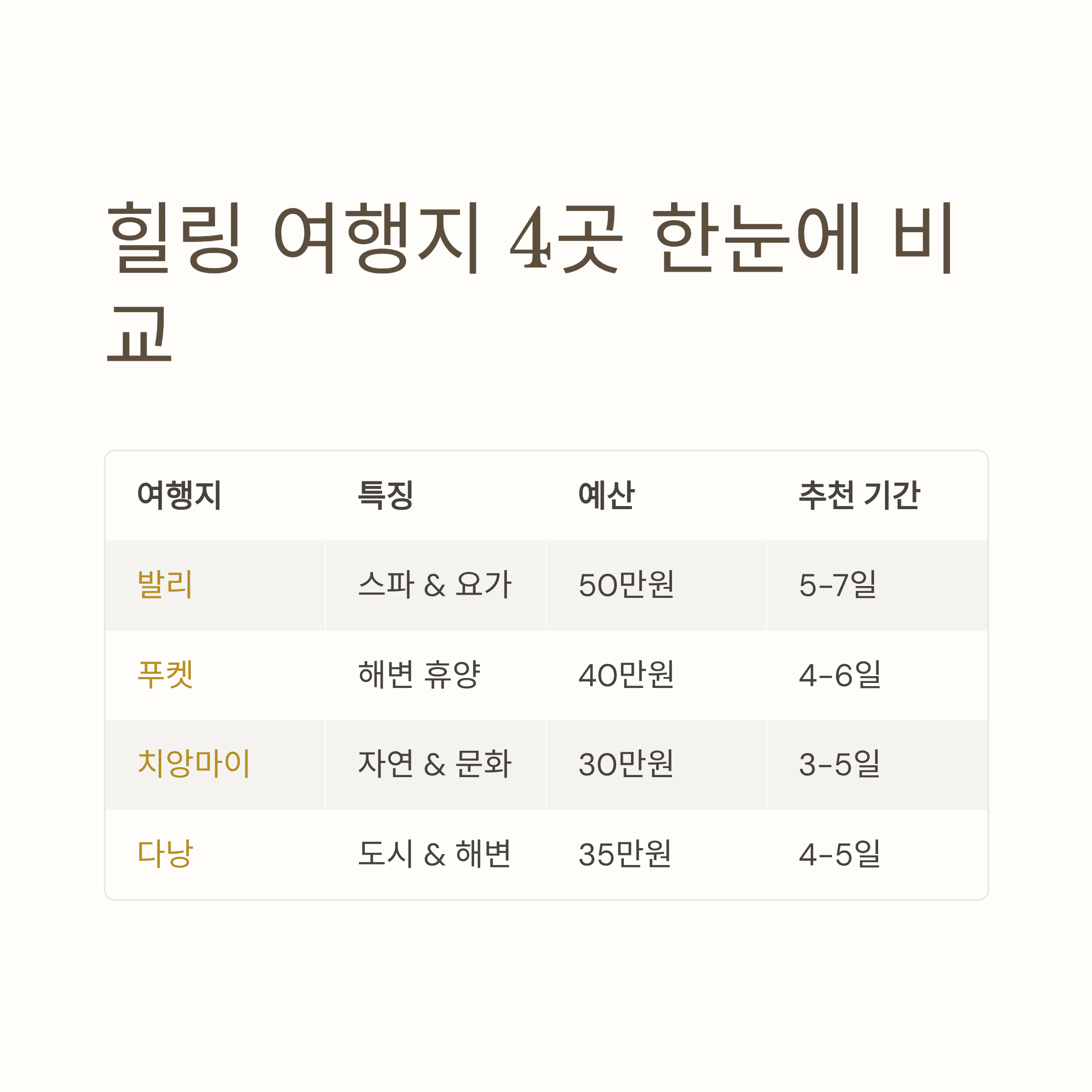 한눈에 비교하는 힐링 여행지 4곳 🗺️