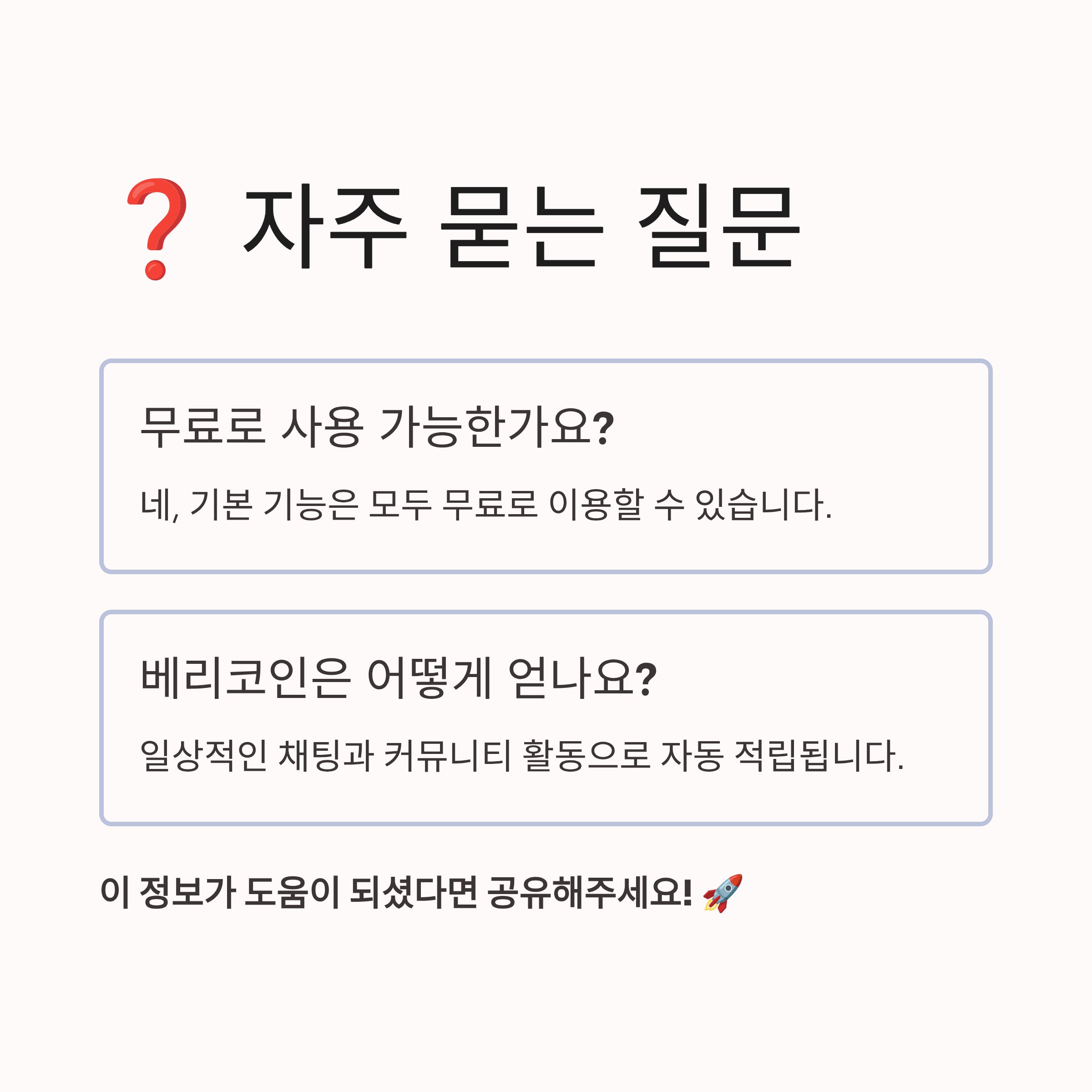 이 글을 통해 베리챗과 함께 미래형 소통 및 보상 경험을 시작하시길 바랍니다! 😊
