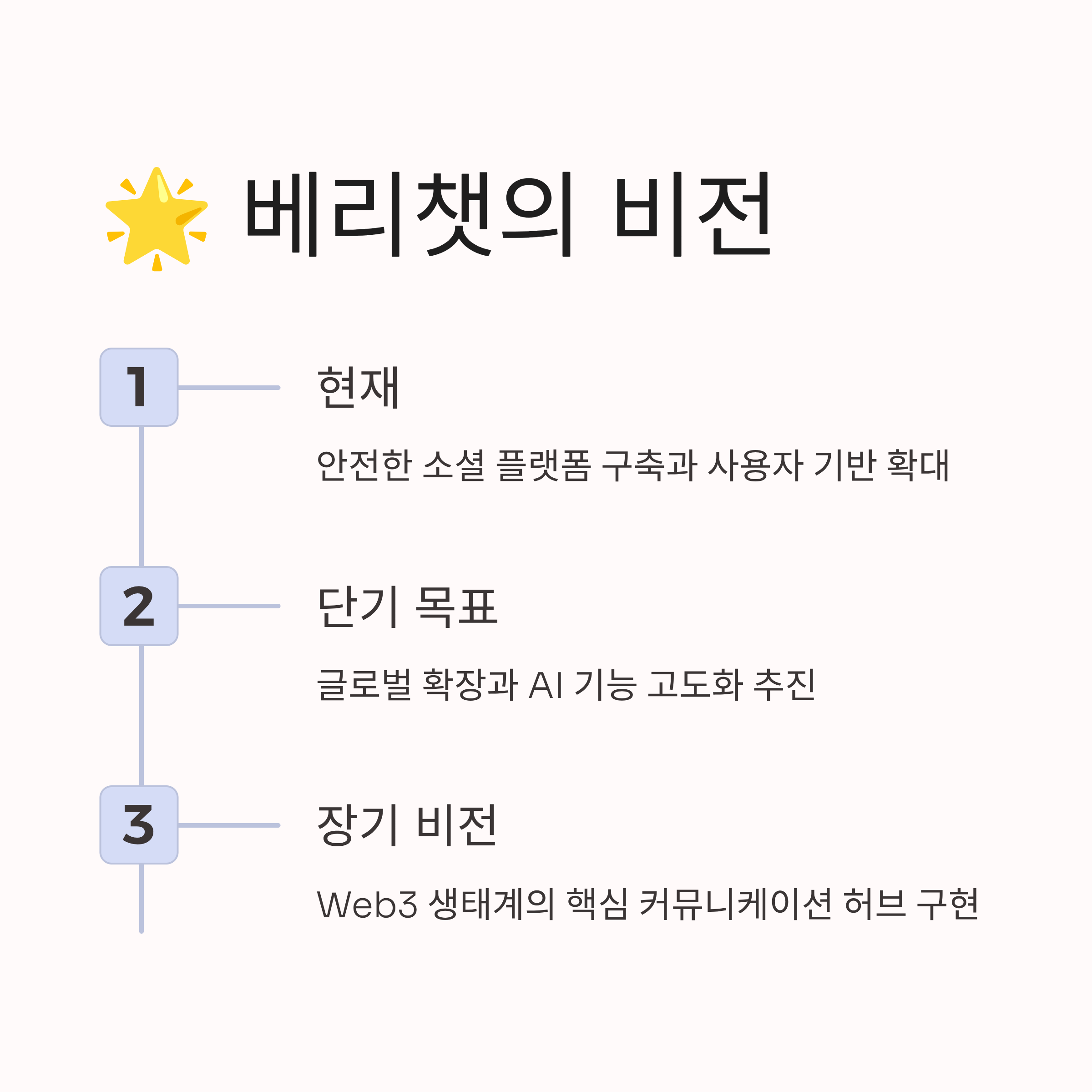 베리챗은 기존 메신저의 친숙함에 웹3의 기술적 이점을 결합하여 암호화폐 대중화에 기여하고자 하는 플랫폼입니다. 📝