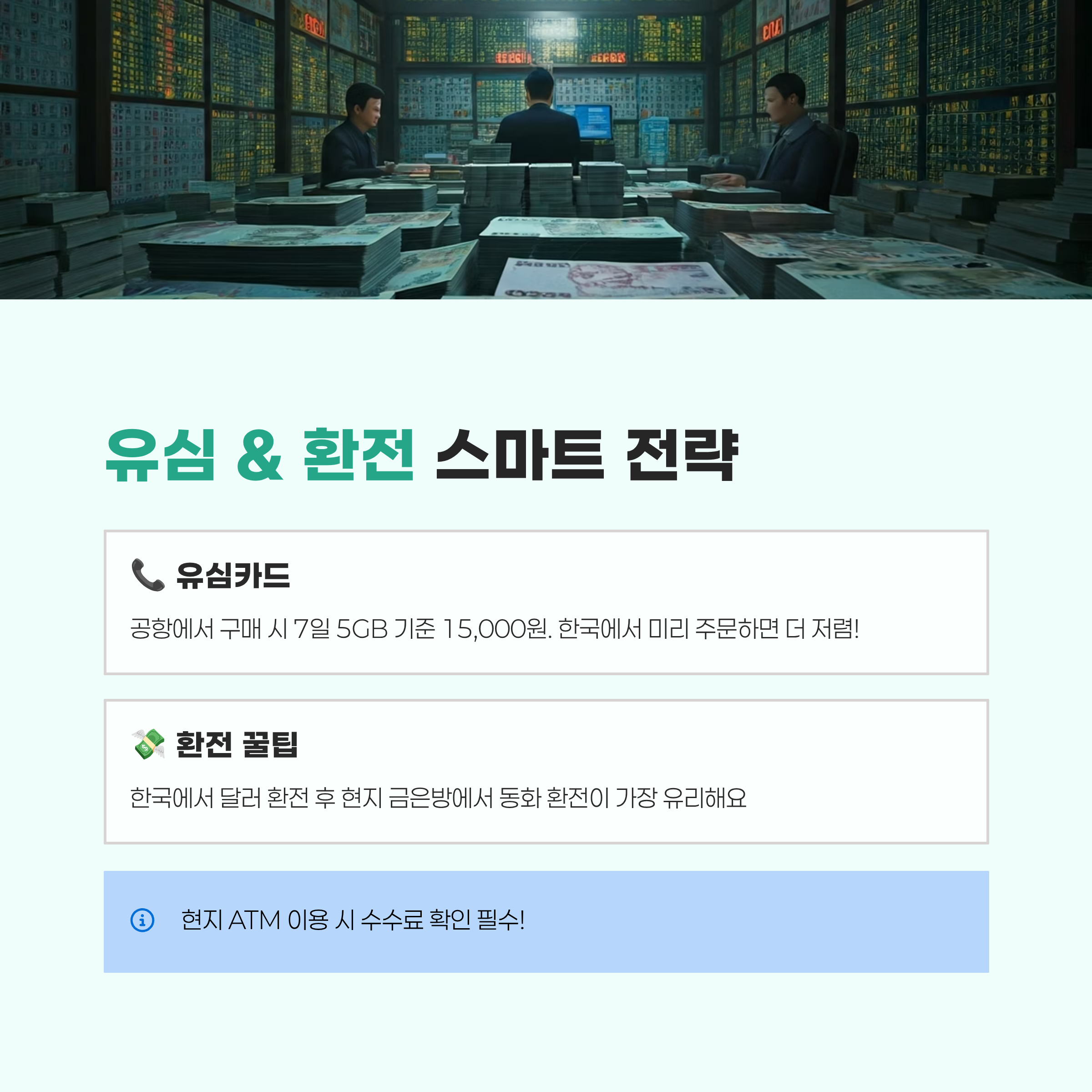 베트남 여행 중 원활한 소통과 효율적인 지출을 위해 현지 유심 구매와 현명한 환전 전략은 필수적입니다.