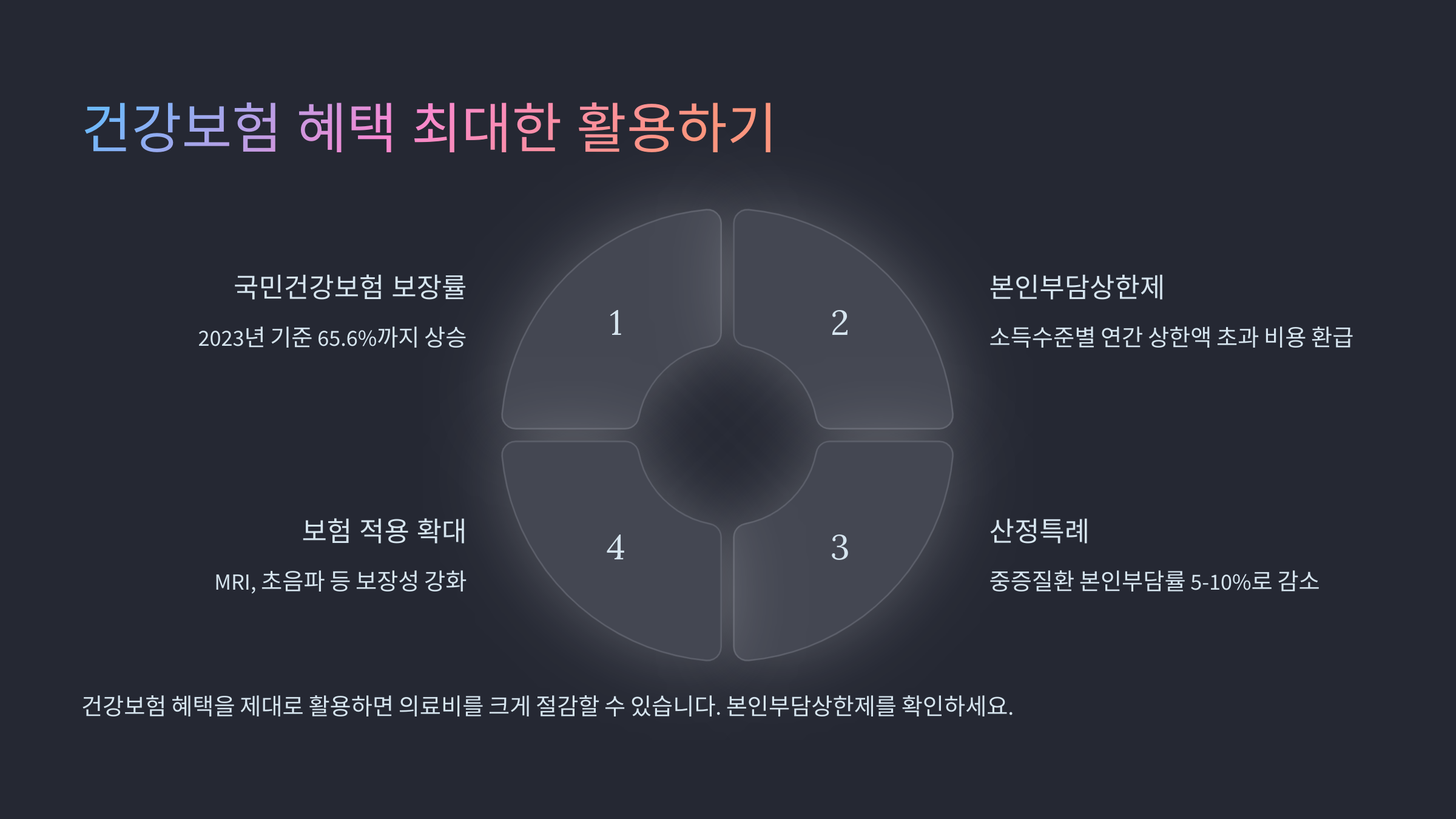 | 본인부담상한제 | 상한 초과 금액 환급 | 경제적 부담 감소 |